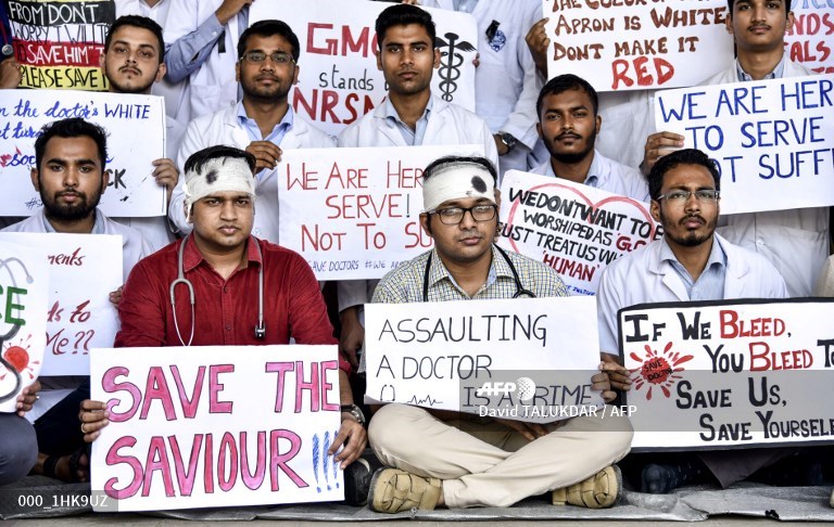 အိန္ဒိယနိုင်ငံမှာ လူနာတွေနဲ့ လူနာရဲ့မိသားစုတွေကနေ အကြမ်းဖက်လုပ်ဆောင်မှုတွေကို ကာကွယ်ပေးရန် ထောင်ချီတဲ့ ဆရာဝန်တွေက တစ်ရက်ကြာ ဆန္ဒပြကြမှာ ဖြစ်ပါတယ်။ ဘင်ဂေါအနောက်ပိုင်းမှာ လူနာတစ်ဦးသေဆုံးမှုနဲ့ ပတ်သတ်ပြီး ကျန်းမာရေးဝန်ထမ်း သုံးဦးကို လူနာရဲ့ မိသားစုဝင်တွေက တိုက်ခိုက်ခဲ့ပါတယ်။