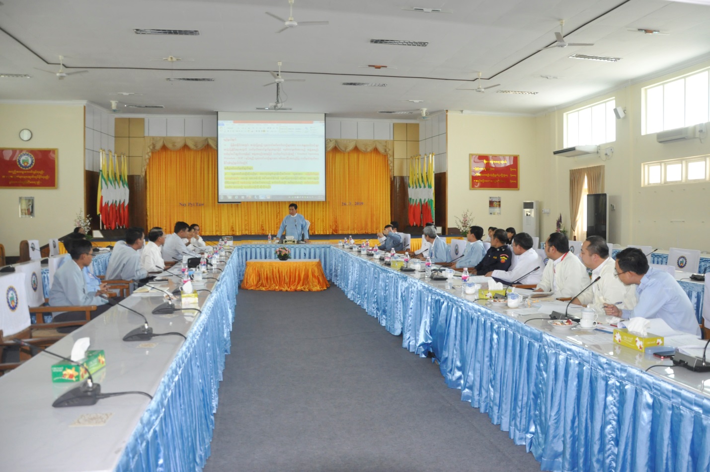 လူနာတင်ယာဉ်ဆိုင်ရာ အရည်အသွေးစစ်ဆေး အတည်ပြုချက်ထုတ်ပေးနိုင်ရေး လုပ်ငန်းလမ်းညွှန်ချက် စတုတ္ထအကြိမ်မြောက် လုပ်ငန်းညှိနှိုင်းအစည်းအဝေးကို ယနေ့ မွန်းလွဲပိုင်းတွင် နေပြည်တော်ရှိ ဝန်ကြီးရုံး အစည်းအဝေးခန်းမ၌ ကျင်းပသည်။