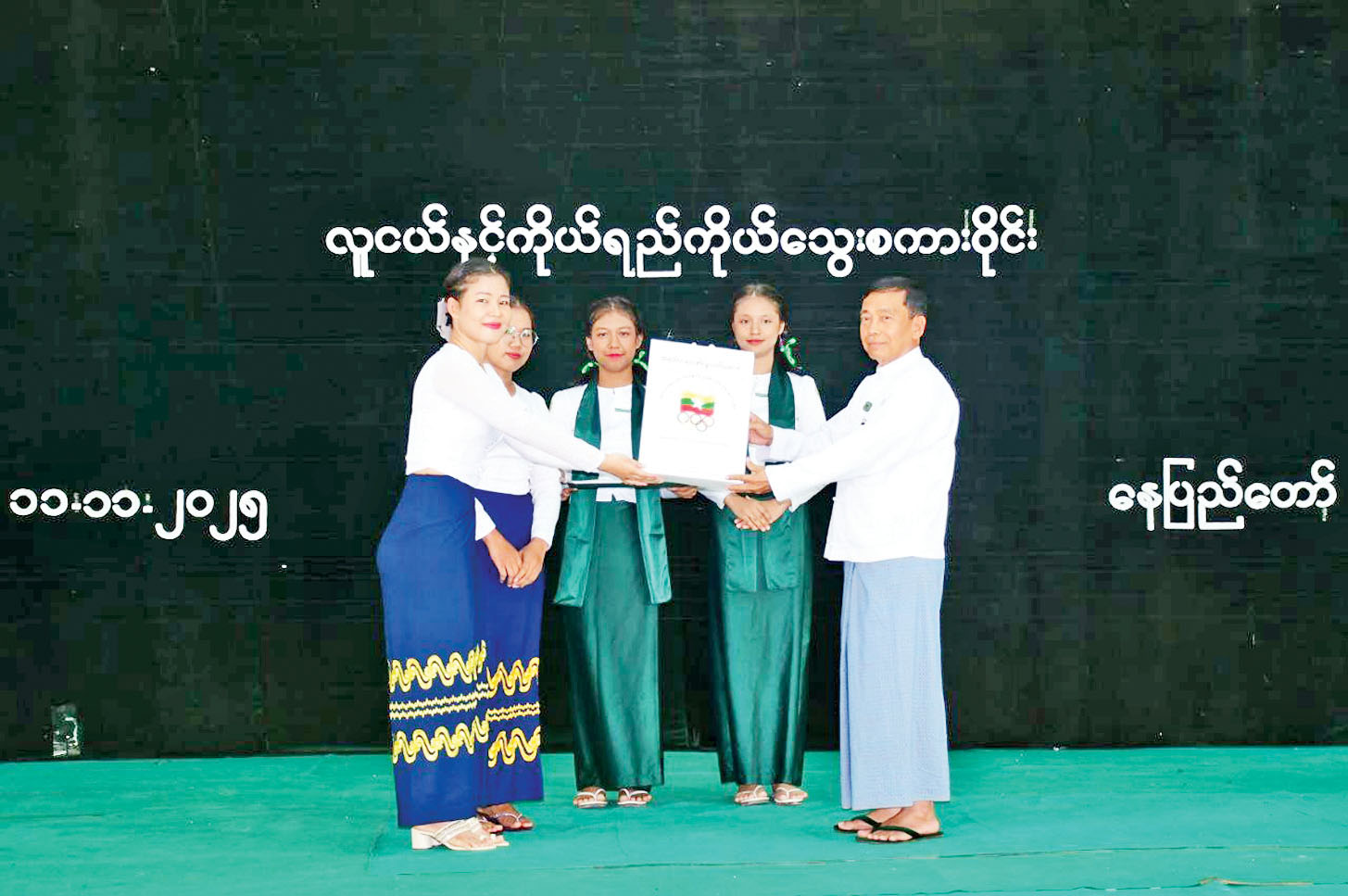 ထို့နောက် အားကစားနှင့် လူငယ်ရေးရာဝန်ကြီးဌာန ဒုတိယဝန်ကြီးက အမှာစကားပြောကြားပြီး အားကစားပစ္စည်းများ ပေးအပ်လှူဒါန်းသည်။