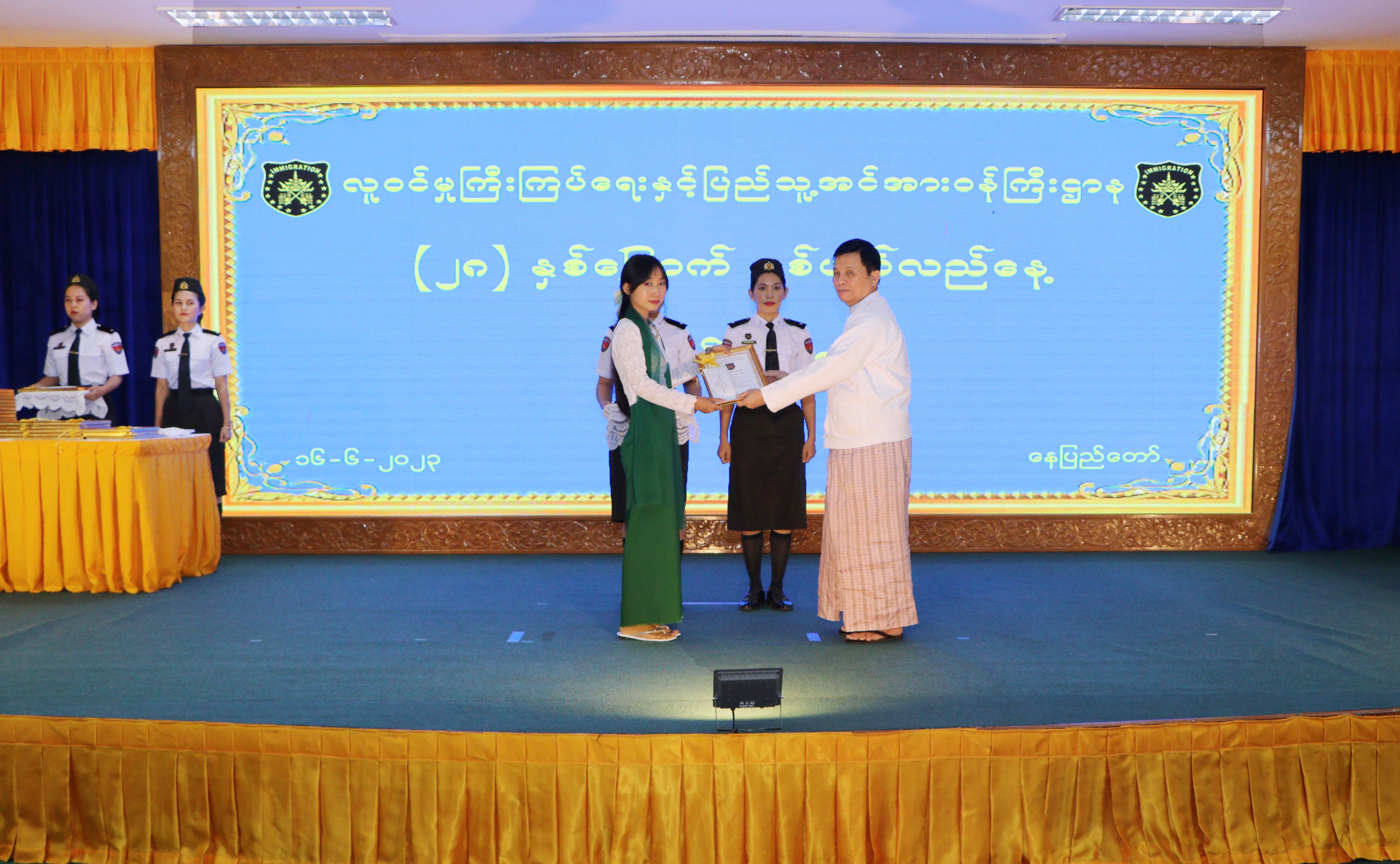 မိမိတို့ဌာနဝန်ထမ်းများသည် နိုင်ငံ၏ မြေပြင်၊ ရေပြင်၊ ဝေဟင်စသည့် နိုင်ငံပိုင်နက်အားလုံး တွင် မည်သူမဆို တရားမဝင် ဝင်။ ထွက် သွားလာမှုမရှိစေရေး၊ တရားဝင် ဝင်၊ ထွက်မှု စနစ်တကျဖြစ်စေရေးအတွက် ကြီးကြပ်စစ်ဆေးခွင့်ပြုဆောင်ရွက်ပေးခြင်း၊ နိုင်ငံအတွင်းနေထိုင်သူအားလုံး စနစ်တကျမှတ်ပုံတင်ပြီး နိုင်ငံသားဖြစ်မှုဆိုင်ရာ အထောက်အထားများ စိစစ်ထုတ်ပေးခွင့်ပြုပေးခြင်း၊ နိုင်ငံဖွံ့ဖြိုးတိုးတက်ရေးအတွက် စီမံကိန်းများရေးဆွဲနိုင်ရန် တိကျမှန်ကန်သည့် လူဦးရေကိန်းဂဏန်း အချက်အလက်များ ရရှိစေရေးအတွက် ဆောင်ရွက်ပေးခြင်း၊ နိုင်ငံ၏ e-Government စနစ်အတွက် အဓိကအခြေခံအကျဆုံးဖြစ်သည့် e-ID စနစ်အကောင်အထည်ဖော်ရေးလုပ်ငန်းကို ဆောင်ရွက်ခြင်း စသည့် လုပ်ငန်းတာဝန်များကို ကြိုးပမ်း ထမ်းဆောင်နေသည့် နိုင်ငံ၏ တံခါးမှူးများဖြစ်ပါကြောင်း၊ ယင်းလုပ်ငန်းအားလုံးသည် နိုင်ငံနှင့်ပြည်သူ အတွက် မဖြစ်မနေဝန်ဆောင်မှုပေးသည့် လုပ်ငန်းများဖြစ်ခြင်းကြောင့် စိတ်ရင်းစေတနာမှန်ဖြင့် ဆောင်ရွက်ပေးနိုင်လျှင် အားလုံး၏ ချစ်ကြည်လေးစား၊ အားထားယုံကြည်မှုကို ရရှိခံစားကြရမည် ဖြစ်ပါကြောင်း။