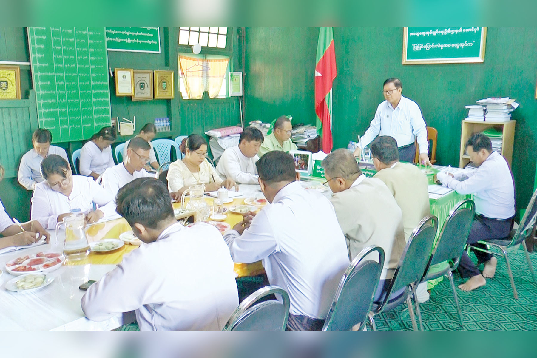 ဒေသအတွင်း စားရေရိက္ခာဖူလုံပိုလျှံရေးဆောင်ရွက်ရာတွင် စိုက်ပျိုးရေးထွက်ကုန်များ တိုးတက်ထုတ်လုပ်ရေးနှင့် အသားငါးကဏ္ဍဖွံ့ဖြိုးရေးကို တစ်ပြိုင်တည်းဆောင်ရွက်ရန်၊ ဒေသနေပြည်သူများ၏ စားသုံးမှုကို ဖူလုံပိုလျှံသော ထုတ်လုပ်မှုဖြစ်စေရေး ဘဏ္ဍာနှစ်အလိုက် တိုးမြှင့်ဆောင်ရွက်ပြီး လယ်ယာသားငါးကုန်ထုတ်လုပ်မှုကို အခြေခံသည့် အသေးစား၊ အငယ်စားနှင့် အလတ်စား (MSMEs) လုပ်ငန်းများဖွံ့ဖြိုးရေးကို ဝိုင်းဝန်းပံ့ပိုးကြိုးပမ်းကြရန်၊ ဒေသဖွံ့ဖြိုးတိုးတက်ရေးနှင့် နိုင်ငံတော်၏ စီမံဆောင်ရွက်လျက်ရှိသည့် စီမံကိန်းများ၊ လုပ်ငန်းများ အတွက်အရေးပါသည့်စာရင်းဇယားများ မှန်ကန်စွာ ကောက်ခံတင်ပြနိုင်ရေး တာဝန်ရှိသူအဆင့်ဆင့်က ကြပ်မတ်ဆောင်ရွက်ရန်၊ ဝန်ထမ်းများအနေဖြင့် တည်ဆဲဥပဒေ၊ နိုင်ငံ့ဝန်ထမ်းဥပဒေစည်းမျဉ်းစည်းကမ်းအမိန့်နှင့် ညွှန်ကြားချက်များကို လေးစားလိုက်နာပြီး ကျင့်ဝတ်သိက္ခာနှင့် လျော်ညီစွာကျင့်ကြံနေထိုင်ကြရန် ဆွေးနွေးမှာကြားပြီး ဝန်ထမ်းများ၏ တင်ပြချက်များအပေါ် ပေါင်းစပ်ညှိနှိုင်းဆောင်ရွက်ပေးခဲ့ကြောင်း သိရသည်။