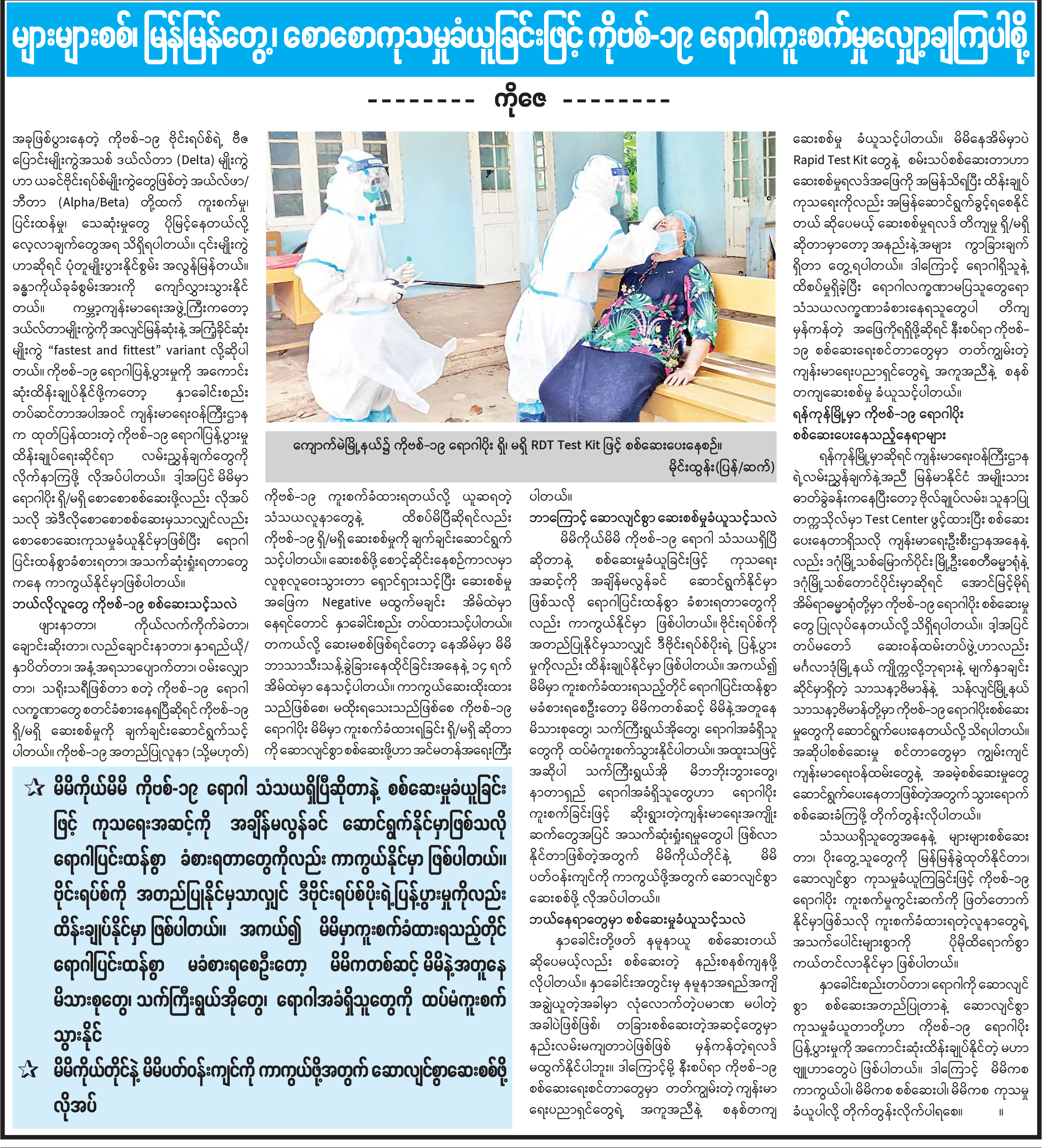 များများစစ်၊ မြန်မြန်တွေ့၊ စောစောကုသမှုခံယူခြင်းဖြင့် ကိုဗစ်-၁၉ ရောဂါကူးစက်မှုလျှော့ချကြပါစို့