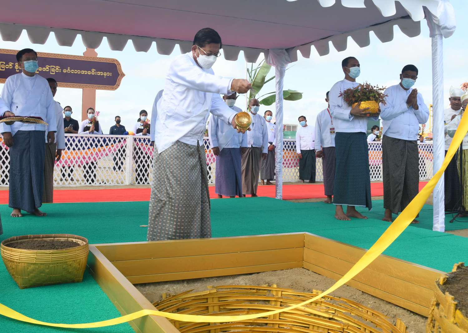 ဦးစွာ အခမ်းအနားကို နမောတဿ သုံးကြိမ်ရွတ်ဆို ဘုရားကန်တော့ ဖွင့်လှစ်ပြီး ဆရာတော်သံဃာတော်များ ရွတ်ပွားချီးမြှင့်တော်မူကြသည့် မေတ္တာပို့ဂါထာတော်များကို နာယူကြည်ညိုကြသည်။ ထို့နောက် ဦးဆောင်ဘုရားဒါယကာ နိုင်ငံတော်စီမံအုပ်ချုပ်ရေးကောင်စီဥက္ကဋ္ဌ နိုင်ငံတော်ဝန်ကြီးချုပ် ဗိုလ်ချုပ်မှူးကြီး မင်းအောင်လှိုင်နှင့် ကောင်စီအတွင်းရေးမှူး ဒုတိယဗိုလ်ချုပ်ကြီး အောင်လင်းဒွေး၊ ကာကွယ်ရေးဦးစီးချုပ်ရုံး(ကြည်း)မှ ဒုတိယဗိုလ်ချုပ်ကြီး ကံမြင့်သန်းတို့သည် အမှတ်(၁)ကျည်းပင် စိုက်ပျိုးပူဇော်မည့် နေရာတွင်လည်းကောင်း၊ ကောင်စီဒုတိယဥက္ကဋ္ဌ ဒုတိယဝန်ကြီးချုပ် ဒုတိယဗိုလ်ချုပ်မှူးကြီး စိုးဝင်းနှင့် ကောင်စီဝင်များဖြစ်ကြသည့် ဗိုလ်ချုပ်ကြီး မြထွန်းဦး၊ ဗိုလ်ချုပ်ကြီး တင်အောင်စန်းတို့သည့် အမှတ် (၂) ကျည်းပင်နေရာတွင် လည်းကောင်း၊ ကောင်စီဝင်မန်းငြိမ်းမောင်နှင့် ပြည်ထောင်စုဝန်ကြီးများဖြစ်ကြသည့် ဦးမောင်မောင်အုန်းနှင့် ဦးကိုကိုတို့သည် အမှတ်(၃)ကျည်းပင် နေရာတွင်လည်း အသီးသီးနေရာယူကြသည်။