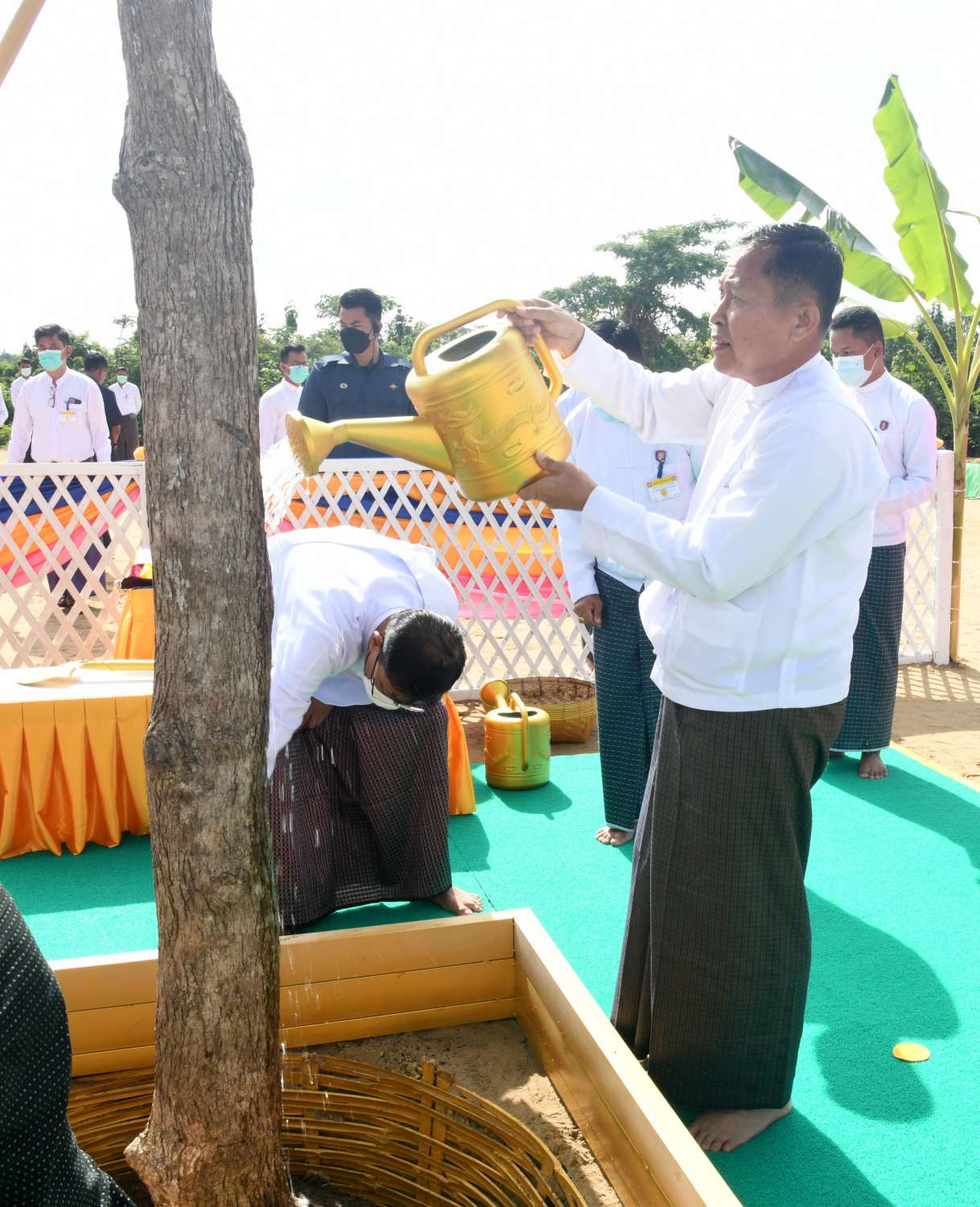 တစ်ချိန်တည်းတွင် အမှတ်(၂)ကျည်းပင်ကို ကောင်စီဒုတိယဥက္ကဋ္ဌ ဒုတိယဝန်ကြီးချုပ်နှင့် အဖွဲ့ဝင်များကလည်းကောင်း၊ အမှတ်(၃) ကျည်းပင်ကို ကောင်စီဝင် မန်းငြိမ်းမောင်နှင့် အဖွဲ့ဝင်များကလည်းကောင်း အသီးသီးစိုက်ပျိုးပူဇော်ကြပြီး အမွှေးနံ့သာရည်များ ပက်ဖျန်းပူဇော်ကြသည်။