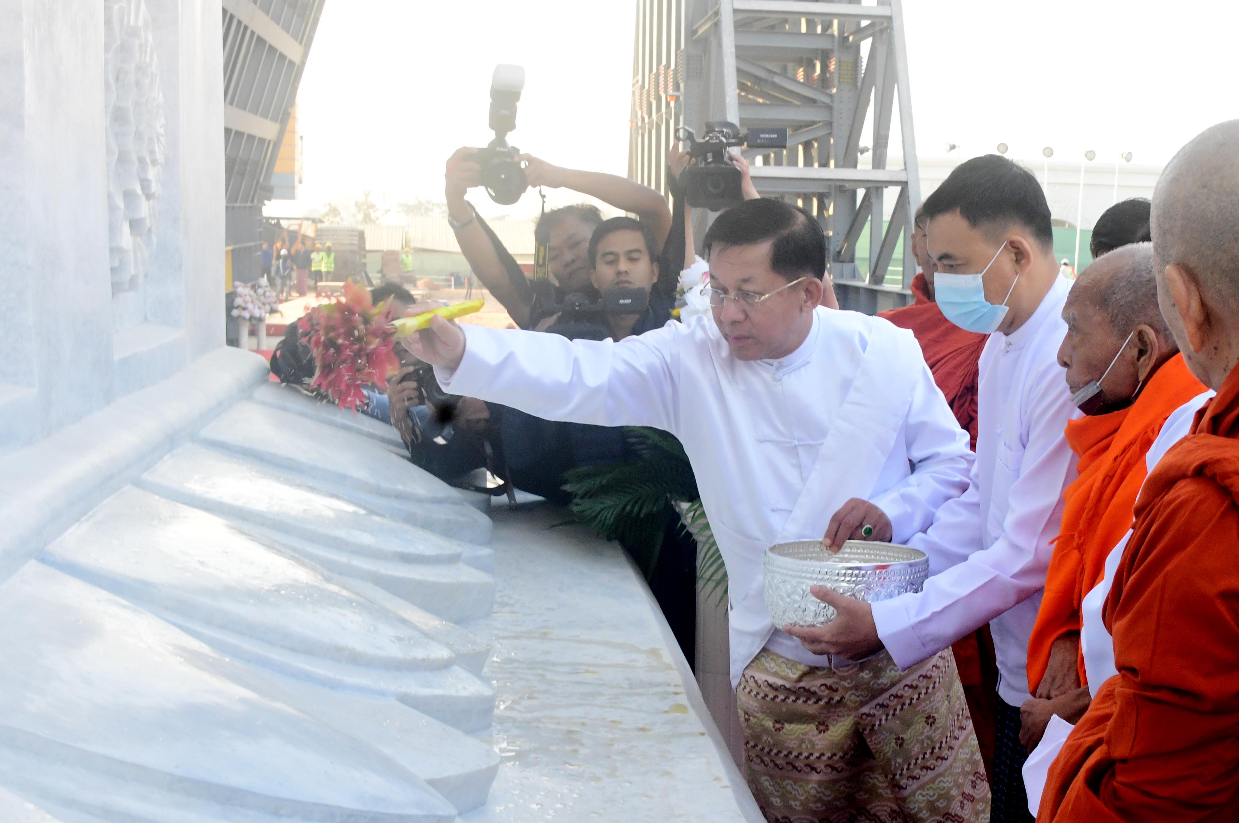 အဆိုပါ မင်္ဂလာအခမ်းအနားသို့ နိုင်ငံတော်သံဃမဟာနာယကအဖွဲ့ဥက္ကဋ္ဌ မန္တလေးမြို့ ဗန်းမော်ကျောင်းတိုက်ဆရာတော် အဘိဓဇမဟာရဋ္ဌဂုရု အဘိဓဇ အဂ္ဂမဟာ သဒ္ဓမ္မဇောတိက ဒေါက်တာ ဘဒ္ဒန္တကုမာရာဘိဝံသနှင့် သီတဂူကမ္ဘာ့ဗုဒ္ဓ တက္ကသိုလ်များ၏ အဓိပတိ အဘိဓဇမဟာရဋ္ဌဂုရု၊ အဘိဓဇအဂ္ဂမဟာသဒ္ဓမ္မ ဇောတိက၊ မဟာဓမ္မ ကထိက ဗဟုဇနဟိတဓရ၊ ရွှေကျင်နိကာယဥက္ကဋ္ဌ ရွှေကျင်သာသနာပိုင် သီတဂူဆရာတော်ဘုရားကြီး ဒေါက်တာ ဘဒ္ဒန္တဉာဏိဿရ အမှူးပြုသည့် ဆရာတော်၊ သံဃာတော်များ ကြွရောက်ချီးမြှင့်တော်မူကြပြီး နိုင်ငံတော်စီမံအုပ်ချုပ်ရေးကောင်စီဥက္ကဋ္ဌ နိုင်ငံတော်ဝန်ကြီးချုပ် ဗိုလ်ချုပ်မှူးကြီး မင်းအောင်လှိုင်နှင့်ဇနီး ဒေါ်ကြူကြူလှ၊ ကောင်စီဒုတိယဥက္ကဋ္ဌ ဒုတိယဝန်ကြီးချုပ် ဒုတိယဗိုလ်ချုပ်မှူးကြီး စိုးဝင်းနှင့်ဇနီး ဒေါ်သန်းသန်းနွယ်၊ ကောင်စီအတွင်းရေးမှူး၊ ကောင်စီတွဲဖက်အတွင်းရေးမှူး၊ ကောင်စီဝင်များနှင့်ဇနီးများ၊ ပြည်ထောင်စုဝန်ကြီးများ၊ နေပြည်တော်ကောင်စီဥက္ကဋ္ဌ၊ ကာကွယ်ရေးဦးစီးချုပ်ရုံးမှ တပ်မတော်အရာရှိကြီးများနှင့်ဇနီးများ၊ နေပြည်တော်တိုင်းစစ်ဌာနချုပ်တိုင်းမှူးနှင့် ဖိတ်ကြားထားသည့် ဧည့်သည်တော်များ တက်ရောက်ကြည်ညိုကြသည်။