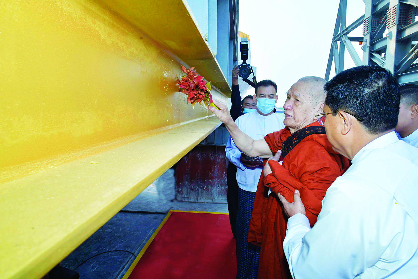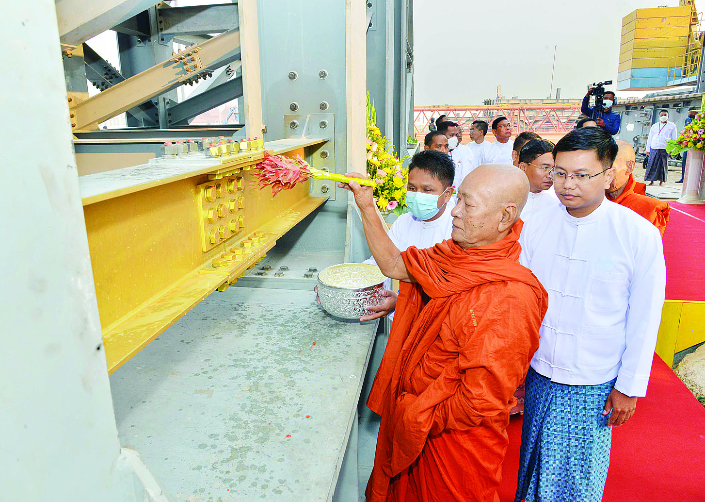 ယင်းနောက် ဆရာတော်ကြီးများ အမှူးပြု၍ ဦးဆောင်ဘုရား ဒါယကာ နိုင်ငံတော်စီမံအုပ်ချုပ်ရေး ကောင်စီဥက္ကဋ္ဌ နိုင်ငံတော်ဝန်ကြီးချုပ်နှင့် အဖွဲ့ဝင်များက ရတနာ ပလ္လင်တော်အနီးရှိ သတ်မှတ်နေရာများတွင် နေရာယူကြပြီး ရတနာပလ္လင်တော် မာရဝိဇယ ဗုဒ္ဓရုပ်ပွားတော်မြတ်ကြီး ဆင်းတုတော် အပိုင်း (၄)အား ထည့်သွင်း ထားသည့် သံမဏိရတနာ ပန်းတောင်းတော်နှင့် ရတနာပလ္လင်တော်ထက်သို့ ပင့်ဆောင် ပူဇော်မည့် သံမဏိမျှော်စင် ကရိန်းနေရာ သုံးခုတို့အား ပရိတ်နံ့သာရည်များ ပက်ဖျန်းပူဇော်၍ သိဒ္ဓိမင်္ဂလာဆင်ယင်သည်။