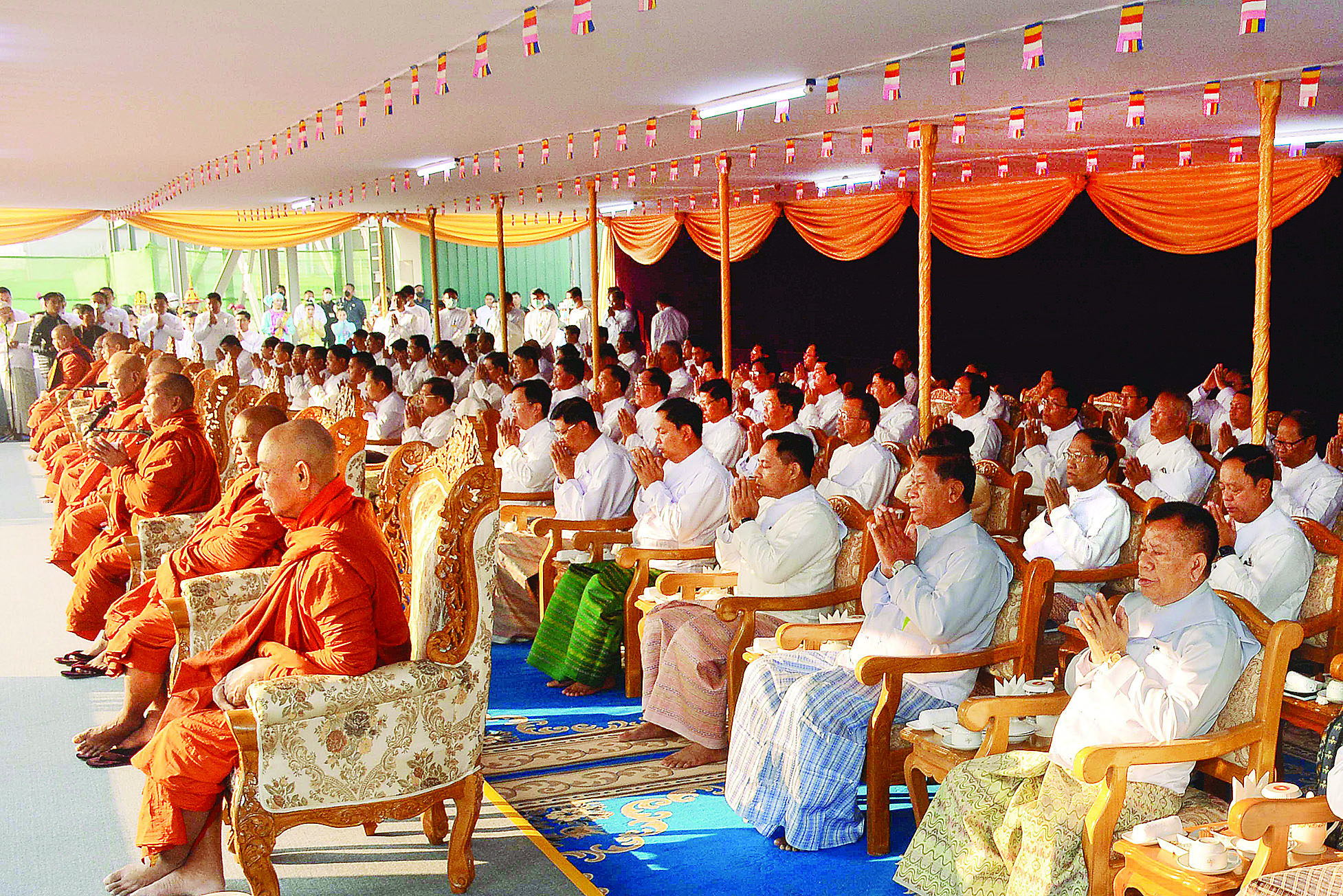 အဆိုပါ ပင့်ဆောင်ပူဇော်ခြင်း မဟာမင်္ဂလာ အခမ်းအနားသို့ နိုင်ငံတော်ဩဝါဒါစရိယ၊ တပ်ကုန်းမြို့ မဟာသီဟနာဒကျောင်းတိုက် ဆရာတော် အဘိဓဇမဟာရဋ္ဌဂုရု ဘဒ္ဒန္တ အာစိဏ္ဏ၊ လယ်ဝေးမြို့ အင်းသာအရှေ့ ကျောင်းတိုက် ဆရာတော် အဘိဓဇ အဂ္ဂမဟာ သဒ္ဓမ္မဇောတိက ဘဒ္ဒန္တပဏ္ဍိတ၊ တိုင်းဩဝါဒါစရိယ၊ ပုဗ္ဗသီရိမြို့နယ် ဝဲကြီးစာသင်တိုက်ဆရာတော် အဘိဓဇမဟာရဋ္ဌဂုရု ဘဒ္ဒန္တအာဒိစ္စဝံသနှင့် မာရဝိဇယရုပ်ပွားတော်မြတ်ကြီး တည်ဆောက်ရေး ဩဝါဒါစရိယဆရာတော် ပျဉ်းမနားမြို့ ပါဠိတက္ကသိုလ် မင်္ဂလာဇေယျုံ ကျောင်းတိုက် ပဓာနနာယက အဂ္ဂမဟာပဏ္ဍိတ အဂ္ဂမဟာသဒ္ဓမ္မဇောတိကဓဇ ဘဒ္ဒန္တဝိမလဗုဒ္ဓိ အမှူးပြုသည့် ဆရာတော် သံဃာတော်များ ကြွရောက်ချီးမြှင့်တော်မူကြပြီး ဦးဆောင်ဘုရားဒါယကာနိုင်ငံတော် စီမံအုပ်ချုပ်ရေးကောင်စီ ဥက္ကဋ္ဌ နိုင်ငံတော်ဝန်ကြီးချုပ် ဗိုလ်ချုပ်မှူးကြီး မင်းအောင်လှိုင်၊ ကောင်စီဒုတိယဥက္ကဋ္ဌ ဒုတိယဝန်ကြီးချုပ် ဒုတိယဗိုလ်ချုပ်မှူးကြီး စိုးဝင်း၊ ကောင်စီအတွင်းရေးမှူး၊ တွဲဖက် အတွင်းရေးမှူးနှင့် ကောင်စီဝင်များ၊ ပြည်ထောင်စုဝန်ကြီးများ၊ နေပြည်တော်ကောင်စီ ဥက္ကဋ္ဌ၊ ကာကွယ်ရေး ဦးစီးချုပ်ရုံးမှ တပ်မတော် အရာရှိကြီးများ၊ နေပြည်တော်တိုင်း စစ်ဌာနချုပ်တိုင်းမှူးနှင့် ဖိတ်ကြားထားသည့် ဧည့်သည်တော်များ၊ ဝတ်အသင်းအဖွဲ့များ တက်ရောက်ကြည်ညိုကြသည်။