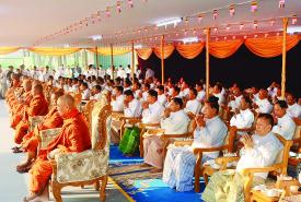 ဆက်လက်ပြီး အောင်ဆု မင်္ဂလာအမျှဝေ စာတမ်းလွှာ ဖတ်ကြား၍ မေတ္တာပို့အမျှပေးဝေ ကာ ဗုဒ္ဓသာသနံစိရံတိဋ္ဌတု သုံး ကြိမ်ရွတ်ဆိုဆုတောင်း၍ အခမ်းအနားကို ရုပ်သိမ်းခဲ့ကာ မဟာမင်္ဂလာအခမ်းအနား အောင်မြင်ခြင်းအထိမ်းအမှတ်အဖြစ် ရတနာ ရွှေမိုး ငွေမိုးများ ရွာသွန်းဖြိုးခဲ့ကြသည်။