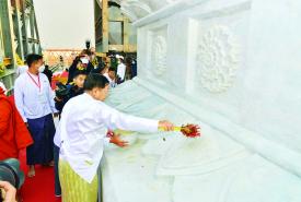 ပြည်ထောင်စုနယ်မြေ နေပြည်တော် ဒက္ခိဏသီရိမြို့နယ်ရှိ မာရဝိဇယ ဗုဒ္ဓ ဥယျာဉ်တော်အတွင်း တည်ထားကိုးကွယ်ရန် ဆောင်ရွက်လျက်ရှိသည့် မာရဝိဇယ ဗုဒ္ဓရုပ်ပွားတော်မြတ်ကြီး၏ ဆင်းတုတော် အပိုင်း(၄)အား ရတနာပလ္လင်တော်ထက်သို့ ပင့်ဆောင်ပူဇော်ခြင်း မဟာမင်္ဂလာ အခမ်းအနားကို ယနေ့နံနက်ပိုင်းတွင် အဆိုပါ ဗုဒ္ဓဥယျာဉ်တော်အတွင်း၌ ကျင်းပပြုလုပ်သည်။