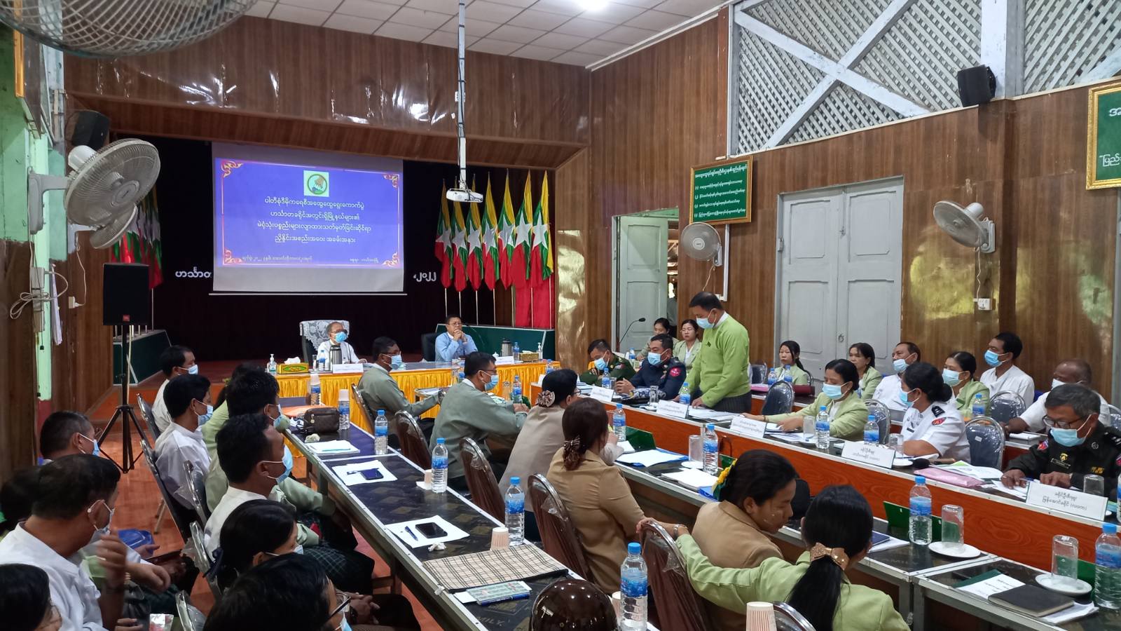 မဲရုံတည်နေရာနှင့် မဲရုံလျာထားမှု(၁၁၁၅)ရုံ လျာထားသတ်မှတ်ထားကြောင်းနှင့် မဲရုံသုံးပစ္စည်းလိုအပ်ချက် တို့ကို တင်ပြဆွေးနွေးသည်။