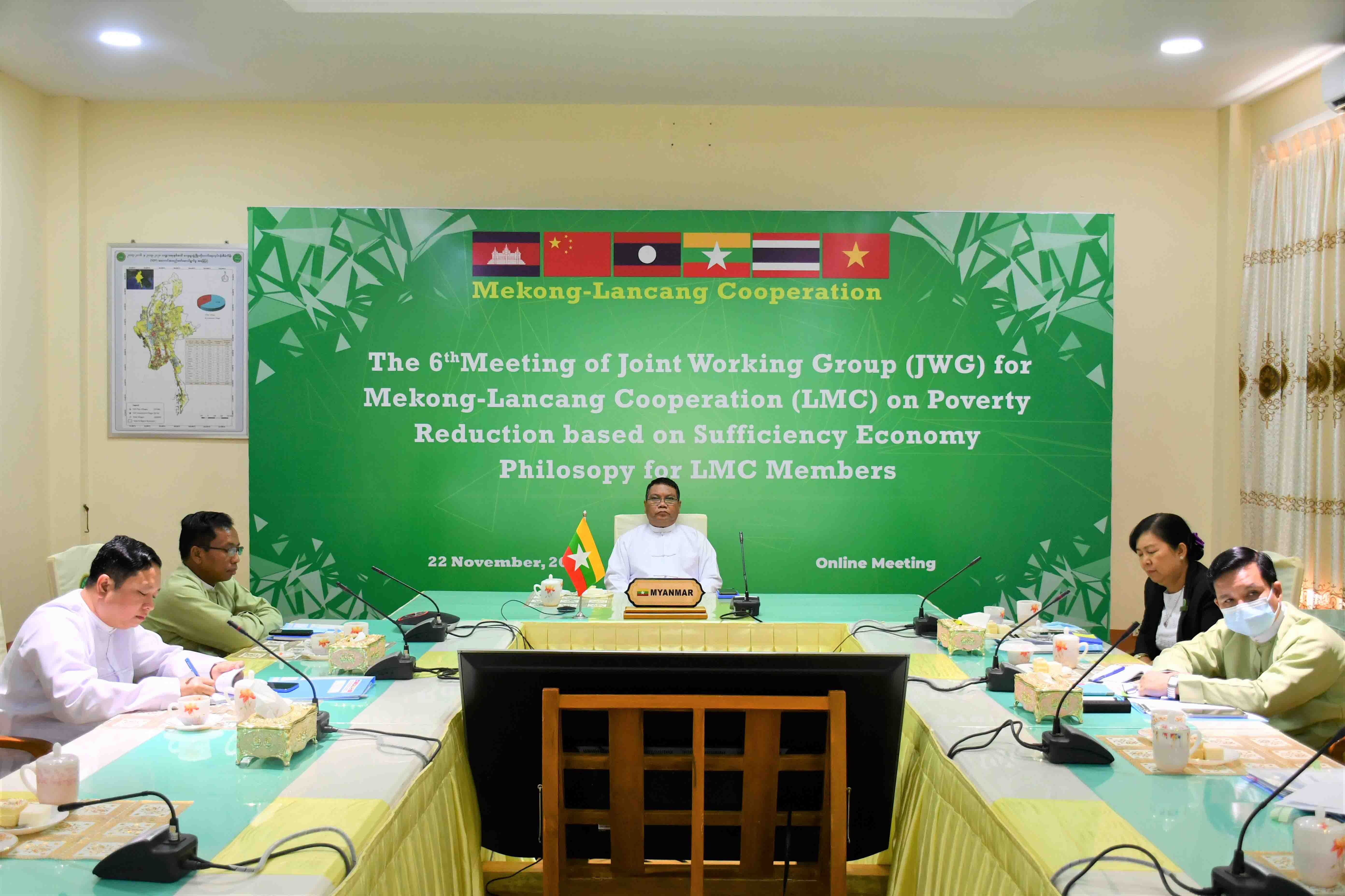 မဲခေါင်-လန်ချန်း နိုင်ငံများအကြား ဆင်းရဲမှုလျော့ချရေးဆိုင်ရာ ပူးပေါင်းဆောင်ရွက်ရေးအဖွဲ့ (Joint Working Group – JWG)၏ (၆)ကြိမ်မြောက်လုပ်ငန်းညှိနှိုင်းအစည်းအဝေးကို ထိုင်းနိုင်ငံမှ အိမ်ရှင်အဖြစ် လက်ခံ၍ ယနေ့မွန်းလွဲ ၁ နာရီက Virtual Conference စနစ်ဖြင့် ကျင်းပပြုလုပ်ရာ မဲခေါင်-လန်ချန်း ဆင်းရဲမှုလျော့ချရေးဆိုင်ရာ Focal Department ဖြစ်သည့် ကျေးလက်ဒေသ ဖွံ့ဖြိုးတိုးတက်ရေးဦးစီးဌာန ညွှန်ကြားရေးမှူးချုပ်နှင့် တာဝန်ရှိသူများ တက်ရောက်ဆွေးနွေးသည်။