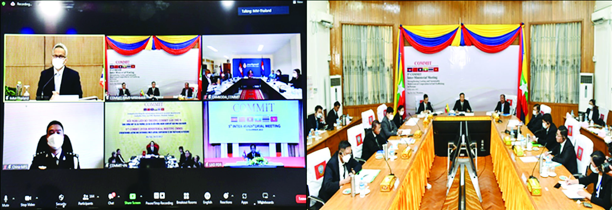 မဲခေါင်မြစ်ဝှမ်းဒေသတွင်း လူကုန်ကူးမှု ပူးပေါင်းတိုက်ဖျက်ရေးစီမံကိန်း (COMMIT)၏ (၅)ကြိမ်မြောက် ဝန်ကြီးအဆင့်အစည်းအဝေး (5th COMMIT Inter-Ministerial Meeting-IMM5) ကို ယနေ့နံနက် ၈ နာရီခွဲတွင် ရုံးအမှတ်(၈) မြန်မာနိုင်ငံရဲတပ်ဖွဲ့ဌာနချုပ် အစည်းအဝေး ခန်းမ(၁)၌ Video Conference စနစ်ဖြင့် ကျင်းပသည်။