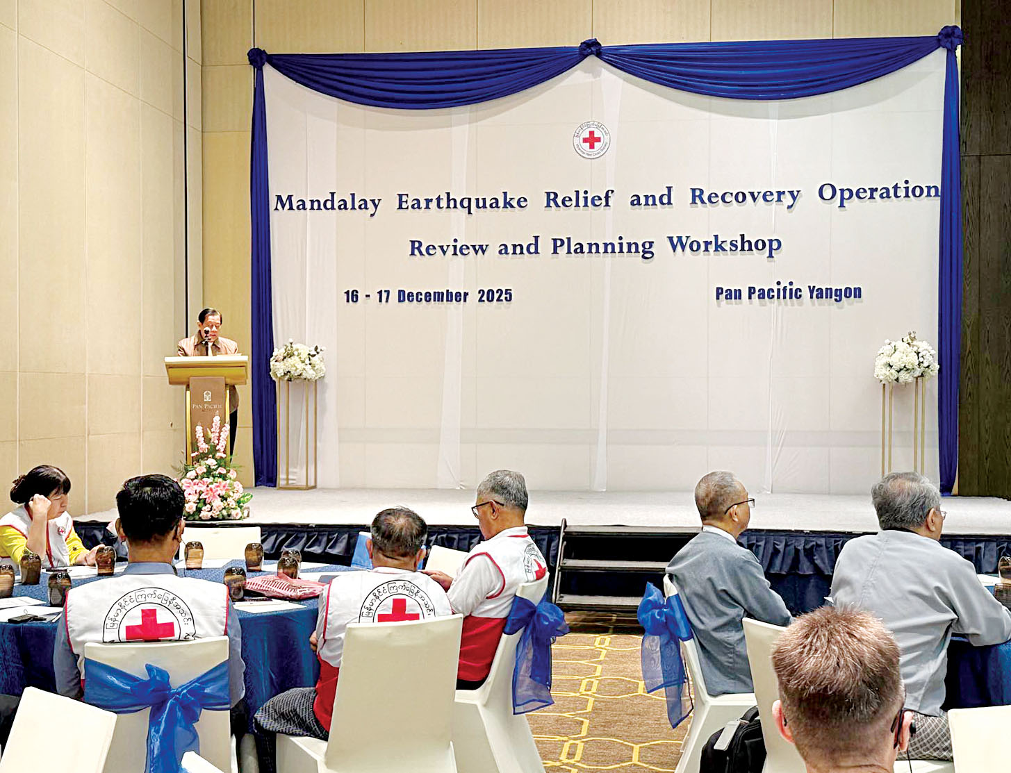 မြန်မာနိုင်ငံကြက်ခြေနီအသင်း Mandalay Earthquake Relief and Recovery Operation Review and Planning Workshop ဖွင့်ပွဲကို ယနေ့နံနက်ပိုင်းက ရန်ကုန်မြို့ ရှိ Pan Pacific Hotel တွင် ကျင်းပသည်။
