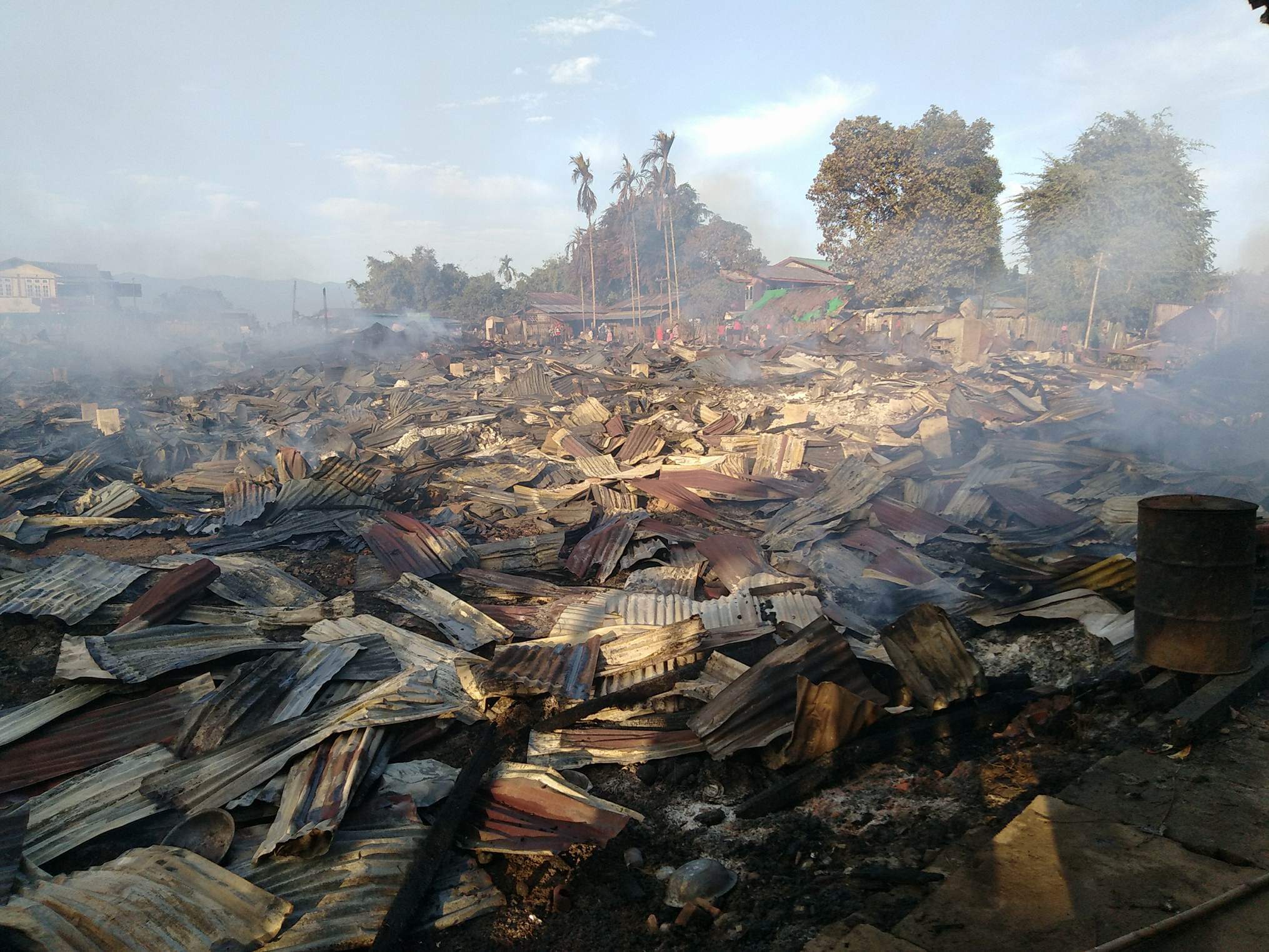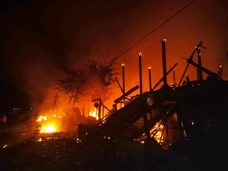 ကချင်ပြည်နယ် ဖားကန့်မြို့နယ် မြစ်ကြီးနား-တနိုင်း ကားလမ်းရှိ ရှဒူးဇွတ်ကျေးရွာ၌ ဒီဇင်ဘာ ၃၀ ရက် ညပိုင်းက ကိုယ်ထူကိုယ်ထကျေးရွာဖွံ့ဖြိုးရေးဈေး မီးလောင်မှုဖြစ်ပွားခဲ့၍ ဆိုင်ခန်းပေါင်း ၁၄၀ ခန့်နှင့် လူနေအိမ် ၁၁ အိမ် မီးလောင်ဆုံးရှုံးခဲ့ကြောင်း ဖားကန့်မြို့နယ်ရဲတပ်ဖွဲ့မှူးရုံးမှ သိရသည်။