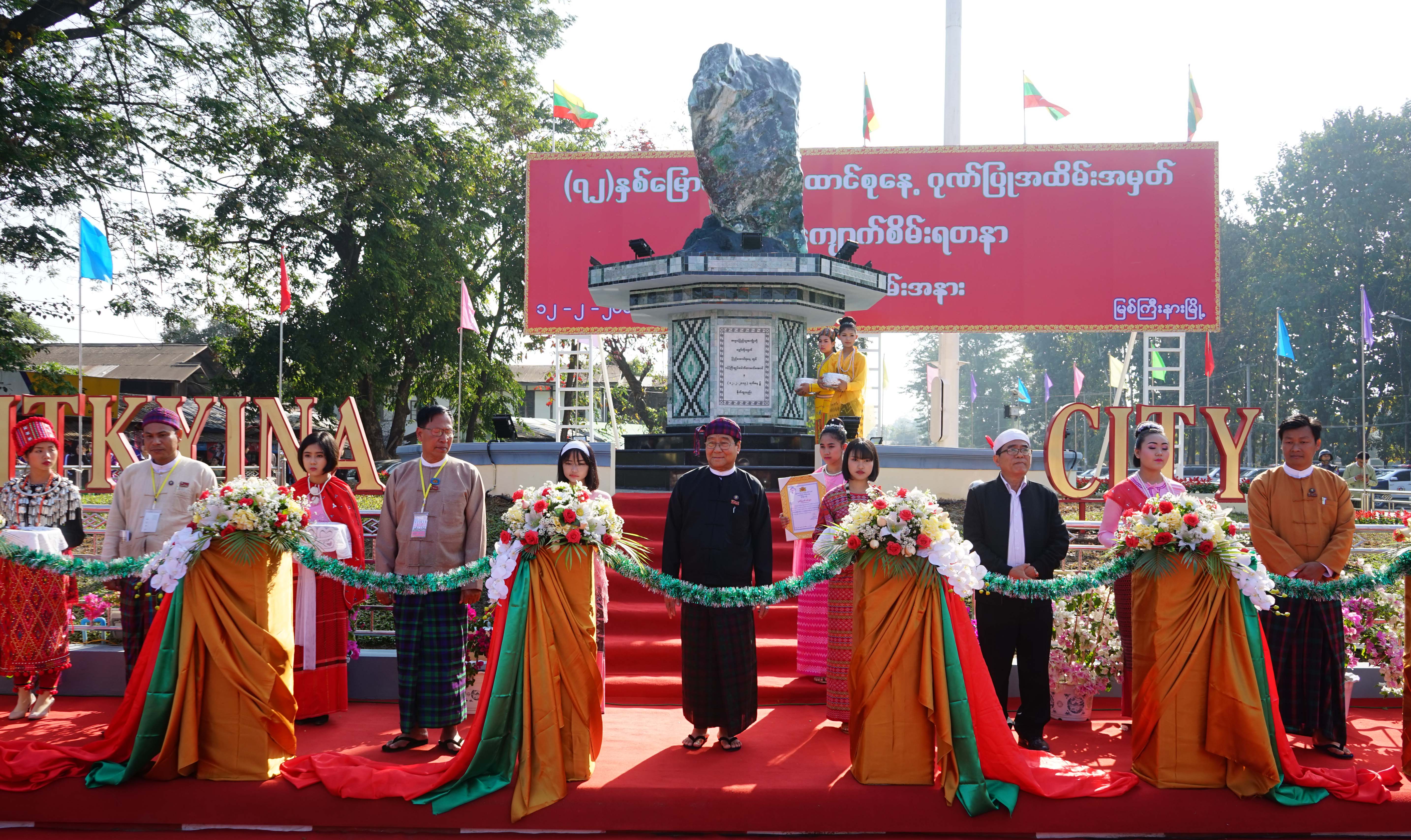 (၇၂)နှစ်မြောက် ပြည်ထောင်စုနေ့ကို ဂုဏ်ပြုသောအားဖြင့် မြန်မာ့ကျောက်စိမ်း ရတနာစိုက်ထူပွဲ အခမ်းအနားကို ယနေ့ နံနက်ပိုင်းတွင် ကချင်ပြည်နယ်၊ မြစ်ကြီးနားမြို့ ဆမားလမ်းနှင့် ဆွမ်ပရာဘွမ်လမ်း တြိဂံပန်းခြံတွင်း ကျောက်စိမ်းစိုက်ထူသည့်နေရာ၌ ကျင်းပသည်။