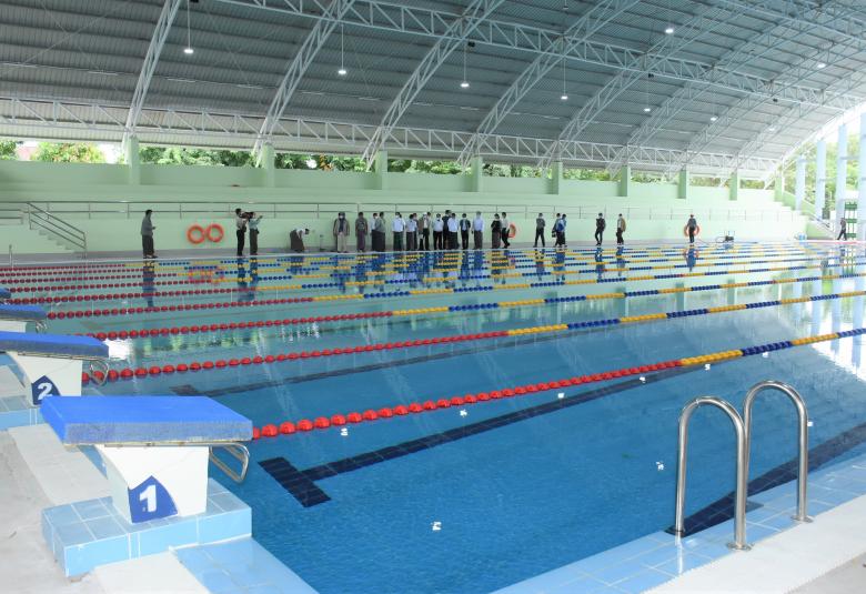 ထိုမှတစ်ဆင့် ပြည်နယ်ဝန်ကြီးချုပ်နှင့်အဖွဲ့သည် မြစ်ကြီးနားမြို့၊ သီတာရပ်ကွက်ရှိ ပြည်နယ်အားကစားနှင့် ကာယပညာဦးစီးဌာနမှ တည်ဆောက်ပြီးစီးသည့် ရေကူးပြေးလမ်း ၁၀ လမ်း ပါ (အလျား ၅၀ မီတာ၊ အနံ ၂၅ မီတာ) ရှိ ရေကူးကန်တည်ဆောက်မှုလုပ်ငန်းခွင်အတွင်း ပွဲကြည့်စင်၊ အမိုးဒိုင်းများ တည်ဆောက်ထားရှိမှု၊ ရေကူးကန်အတွင်း ခေတ်မီစက်ကိရိယာများဖြင့် သန့်ရှင်းရေး လုပ်ငန်းဆောင်ရွက်ခြင်း၊ ရေသန့်စင်ခြင်း စက်ကိရိယာများ တပ်ဆင်ထားရှိမှု အခြေအနေတို့ကို လှည့်လည်ကြည့်ရှုစစ်ဆေးခဲ့ကြောင်း သိရသည်။