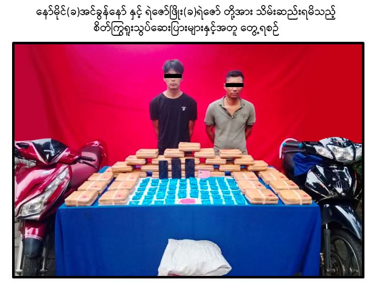 မူးယစ်ဆေးဝါးတားဆီးနှိမ်နင်းရေးရဲတပ်ဖွဲ့မှ တပ်ဖွဲ့ဝင်များပါဝင်သော ပူးပေါင်းအဖွဲ့သည် စက်တင်ဘာ ၁ ရက် ညနေ ၄ နာရီတွင် မြစ်ကြီးနားမြို့၊ ယုဇနရပ်ကွက်၊ လင်းရောင်ခြည် လမ်းပေါ် တွင် နော်မိုင်(ခ)အင်ခွန်နော် မောင်းနှင်လာသည့် မော်တော်ဆိုင်ကယ်နှင့် ရဲဇော်ဖြိုး(ခ) ရဲဇော် မောင်းနှင်လာသည့် မော်တော်ဆိုင်ကယ်တို့ကို စစ်ဆေးရှာဖွေရာ စိတ်ကြွရူးသွပ်ဆေးပြား ၂၁၀,၉၀၀ ကိုလည်းကောင်း။