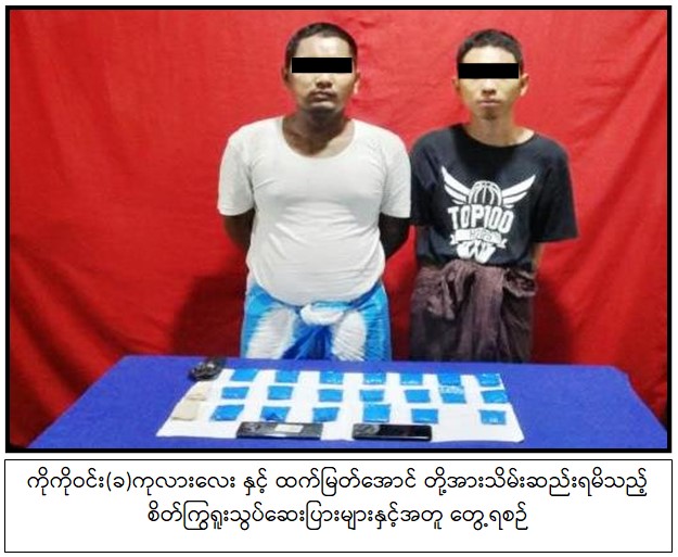 အလားတူ ယင်းနေ့ ညနေ ၄ နာရီတွင် မူးယစ်ဆေးဝါး တားဆီးနှိမ်နင်းရေးရဲတပ်ဖွဲ့မှ တပ်ဖွဲ့ဝင်များ ပါဝင်သောပူးပေါင်းအဖွဲ့သည် မင်္ဂလာတောင်ညွန့်မြို့နယ်၊ ကန်တော် ကလေး (တောင်) ရပ်ကွက်၊ မြန်မာ့ဂုဏ်ရည်လမ်းပေါ်တွင် ထက်မြတ်အောင်နှင့် ကိုကိုဝင်း (ခ) ကုလားလေးတို့ ၂ ဦးအား မသင်္ကာဖွယ်တွေ့ရှိသဖြင့် စစ်ဆေးရှာဖွေရာ စိတ်ကြွရူးသွပ်ဆေးပြား ၄,၀၀၀ ကိုလည်းကောင်း သိမ်းဆည်းရမိခဲ့သဖြင့် ၎င်းတို့အား မူးယစ်ဆေးဝါးနှင့် စိတ်ကိုပြောင်းလဲစေသော ဆေးဝါးများဆိုင်ရာ ဥပဒေအရ အရေးယူထားကြောင်း သိရသည်။