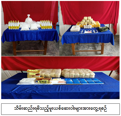 အလားတူ ဖေဖော်ဝါရီ ၂၇ ရက် ည ၈နာရီခွဲတွင် တပ်မတော်မှ မိုင်းဆတ်မြို့နယ် မိုင်းတွန်း (တောင်ပေါ်)ကျေးရွာအုပ်စု၊ မိုင်းထလန်း - ခပ်ပူတွန်းကျေးရွာသွားလမ်းတွင် မောင်းနှင်လာသော မော်တော် ဆိုင်ကယ် ၂ စီးကို စစ်ဆေးရန်ရပ်တန့်ခိုင်းစဉ် နောက်ပြန်လှည့်ထွက်ပြေးခဲ့ပြီး ကျကျန်ခဲ့သည့် ဆာလာအိတ် ၂ အိတ်အတွင်းမှ စိတ်ကြွရူးသွပ်ဆေးပြား ၃၀၀,၀၀၀ ကိုလည်းကောင်း၊ ဖေဖော်ဝါရီ ၂၈ ရက် နံနက်ပိုင်းတွင် တပ်မတော်မှ မိုင်းဆတ်မြို့နယ်၊ မိုင်းတွန်း (တောင်ပေါ်) ကျေးရွာအုပ်စု၊ ဟွေမီးကျေးရွာ၏အနောက် မြောက်ဘက်၊ တောင်ယာသွားလမ်းဘေးချုံအတွင်းရှိ ဆာလာအိတ်အတွင်းမှ စိတ်ကြွရူးသွပ်ဆေးပြား ၂၀၀,၀၀၀ ပြား၊ အိုက်စ် ၂ ကီလိုတို့ကိုလည်းကောင်း၊ မွန်းလွဲပိုင်းတွင် မိုင်းဆတ်မြို့နယ်၊ မိုင်းတွန်း(တောင်ပေါ်)ကျေးရွာအုပ်စု၊ နမ့်ခမ်းကျေးရွာအနီးတွင် အမြင့်ပေ ၁၀ ပေခန့်ရှိ သစ်ပင်ခြောက် ခွဆုံသစ်ခေါင်းအတွင်းမှ ဘိန်းဖြူ ၄ ဒသမ ၈ ကီလို၊ အဖြူရောင်ကော်မှုန့် ၄ ဒသမ ၆၄ ကီလိုတို့ကို သိမ်းဆည်းရမိခဲ့ကြောင်း သိရသည်။