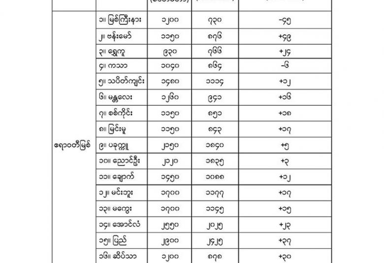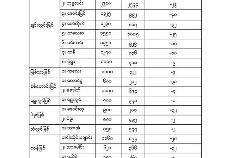 Jun 29,2020 |10:05 | နေပြည်တော် ၂၉ ဇွန် မိုးလေဝသနှင့် ဇလဗေဒညွှန်ကြားမှုဦးစီးဌာနမှ (၂၉.၆.၂၀၂၀) ရက်နေ့ နံနက်(ဝ၆:၃၀)နာရီအချိန်တွင် တိုင်းတာရရှိသော မြစ်ရေအခြေအနေများကို သိရှိနိုင်ပါရန် ဖော်ပြလိုက်ပါတယ်။ Crd-မိုးလေဝသနှင့်ဇလဗေဒညွှန်ကြားမှုဦးစီးဌာန