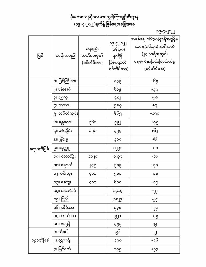 မိုးလေဝသနှင့် ဇလဗေဒညွှန်ကြားမှုဦးစီးဌာနမှ (၁၉.၄.၂၀၂၂) ရက်နေ့ နံနက်  ၆  နာရီခွဲတွင် တိုင်းတာရရှိသော မြစ်ရေအခြေအနေများကို သိရှိနိုင်ပါရန် ဖော်ပြလိုက်ပါတယ်...