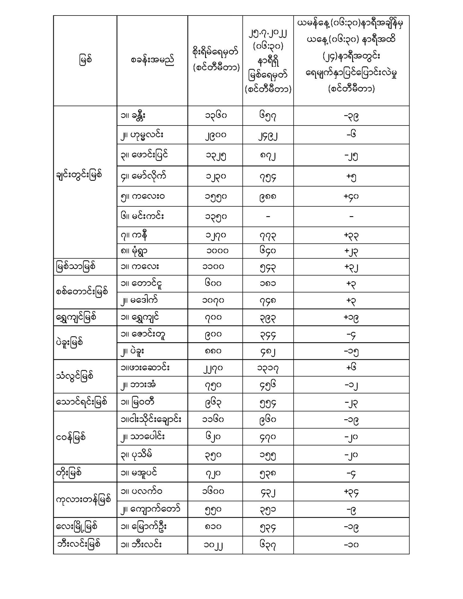 Jul 25,2022 |10:22 | ဇူလိုင် ၂၅ မိုးလေဝသနှင့် ဇလဗေဒညွှန်ကြားမှုဦးစီးဌာနမှ (၂၅.၇.၂၀၂၂) ရက်နေ့ နံနက်(၀၆:၃၀)နာရီအချိန်တွင် တိုင်းတာရရှိသော မြစ်ရေအခြေအနေများကို သိရှိနိုင်ပါရန် ဖော်ပြလိုက်ပါတယ်... Crd>>>မိုး/ဇလ