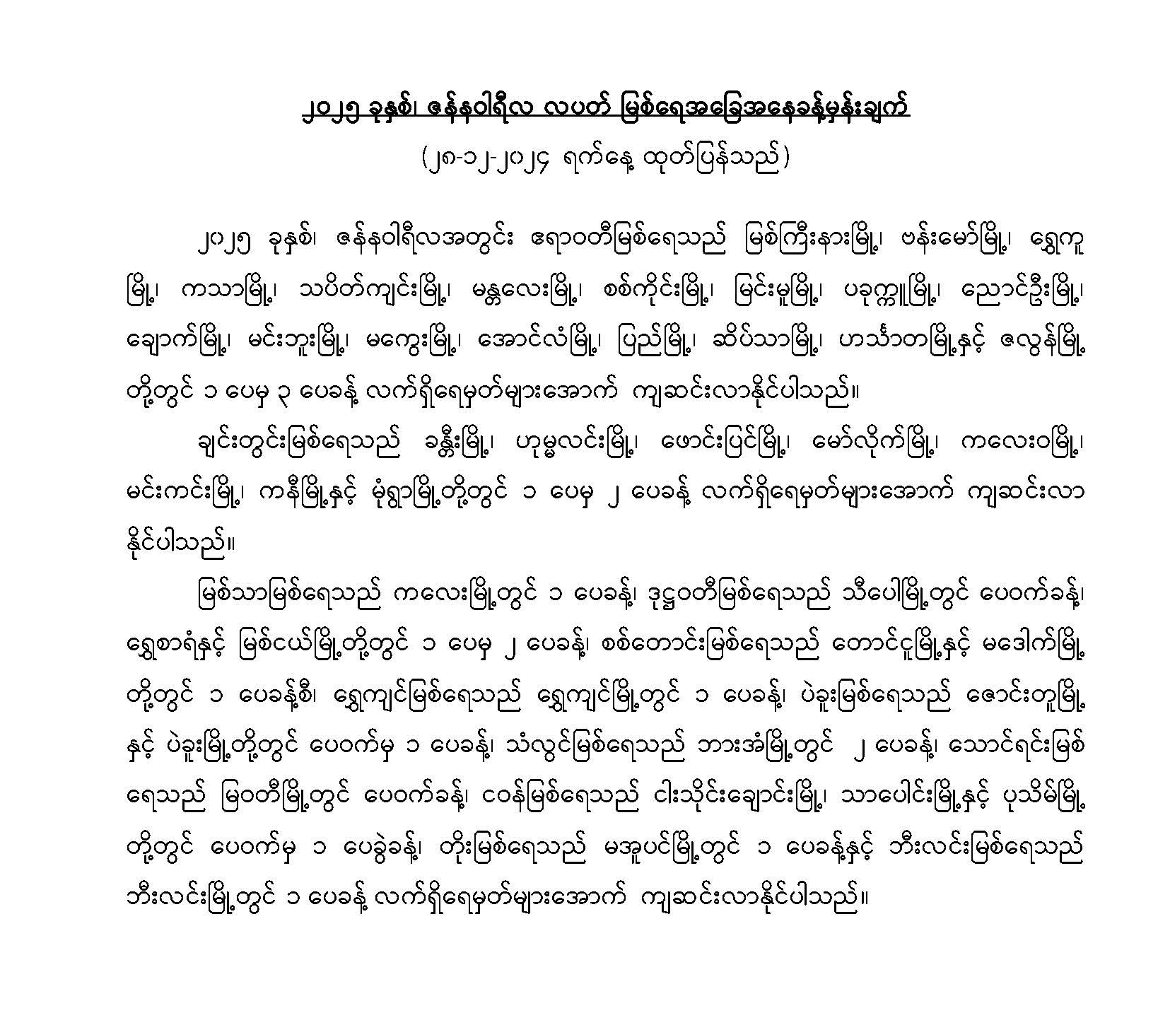 မိုးလေဝသနှင့်ဇလဗေဒညွှန်ကြားမှုဦးစီးဌာနမှ ၂၀၂၅ ခုနှစ်၊ ဇန်နဝါရီလအတွက် မြစ်ရေအခြေအနေ ခန့်မှန်းချက်ကို ၂၈-၁၂-၂၀၂၄ ရက်နေ့တွင် အောက်ပါအတိုင်း ထုတ်ပြန်ထားပါတယ်…
