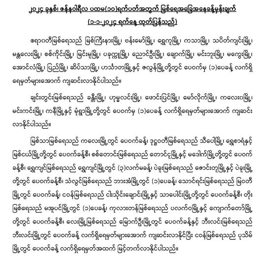 မိုးလေဝသနှင့်ဇလဗေဒညွှန်ကြားမှုဦးစီးဌာနမှ ၂၀၂၄ ခုနှစ်၊ ဇန်နဝါရီလ ပထမ(၁၀)ရက်ပတ်အတွက် မြစ်ရေအခြေအနေခန့်မှန်းချက်ကို (၁.၁.၂၀၂၄)ရက်နေ့တွင် အောက်ပါအတိုင်း ထုတ်ပြန်ထားပါသည်။