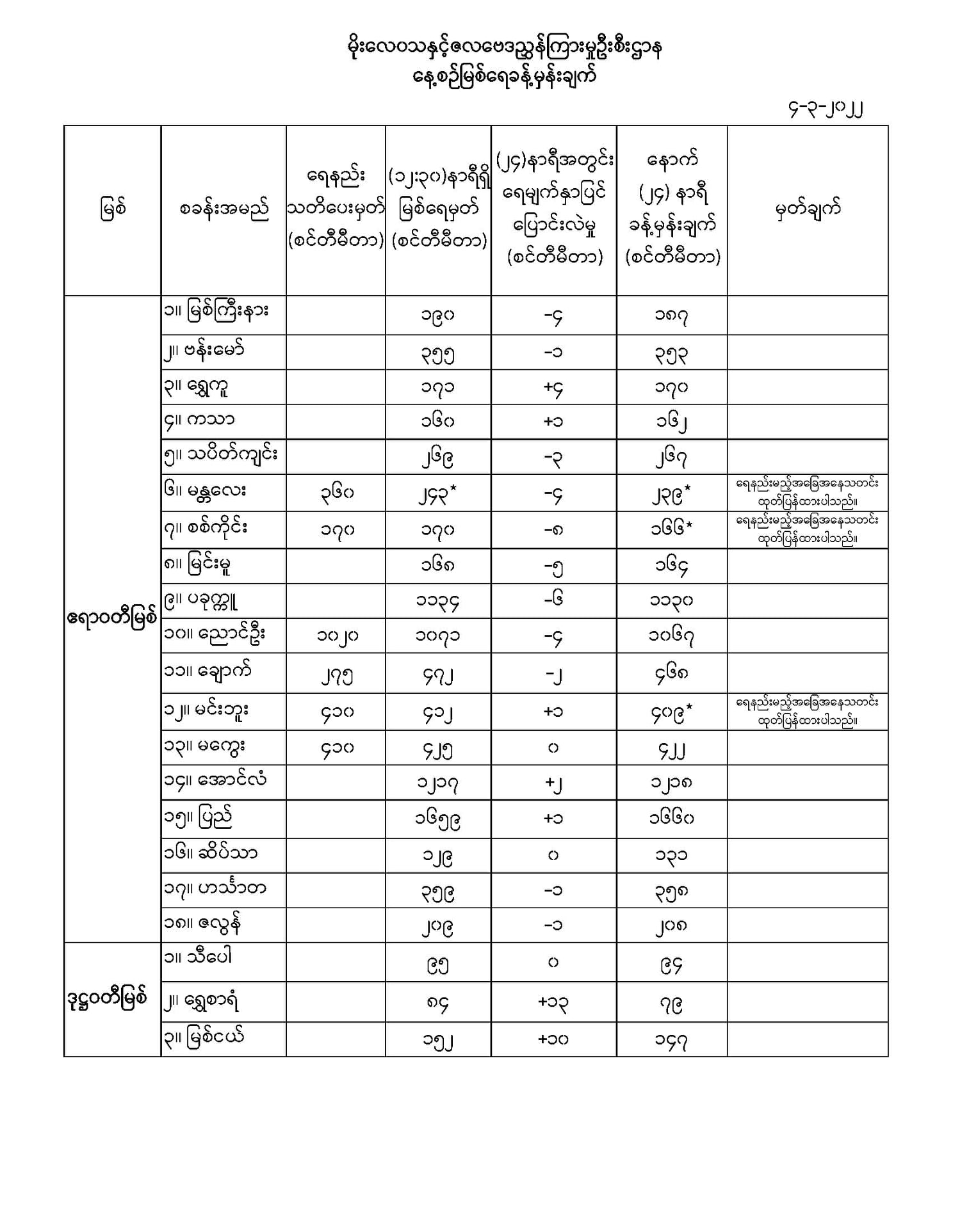 Mar 4,2022 |02:03 | မတ် ၄ မိုးလေဝသနှင့် ဇလဗေဒညွှန်ကြားမှုဦးစီးဌာနမှ (၄.၃.၂၀၂၂) ရက်နေ့တွင် ထုတ်ပြန်သည့် နေ့စဉ်မြစ်ရေခန့်မှန်းချက်များကို အောက်ပါအတိုင်း ဖော်ပြထားပါတယ်... Crd>>>မိုး/ဇလ
