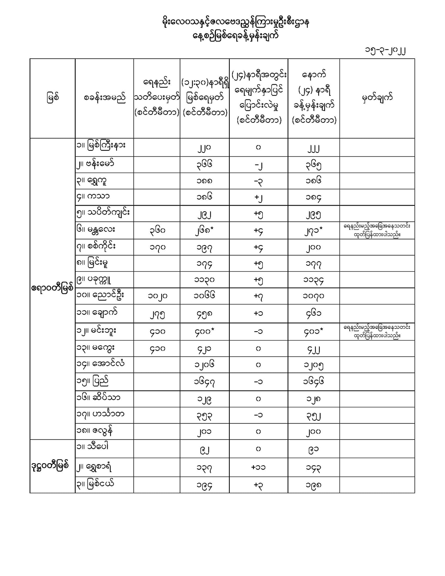 မိုးလေဝသနှင့် ဇလဗေဒညွှန်ကြားမှုဦးစီးဌာနမှ (၁၅.၃.၂၀၂၂) ရက်နေ့တွင် ထုတ်ပြန်သည့် နေ့စဉ်မြစ်ရေခန့်မှန်းချက်များကို အောက်ပါအတိုင်း ဖော်ပြထားပါတယ်...