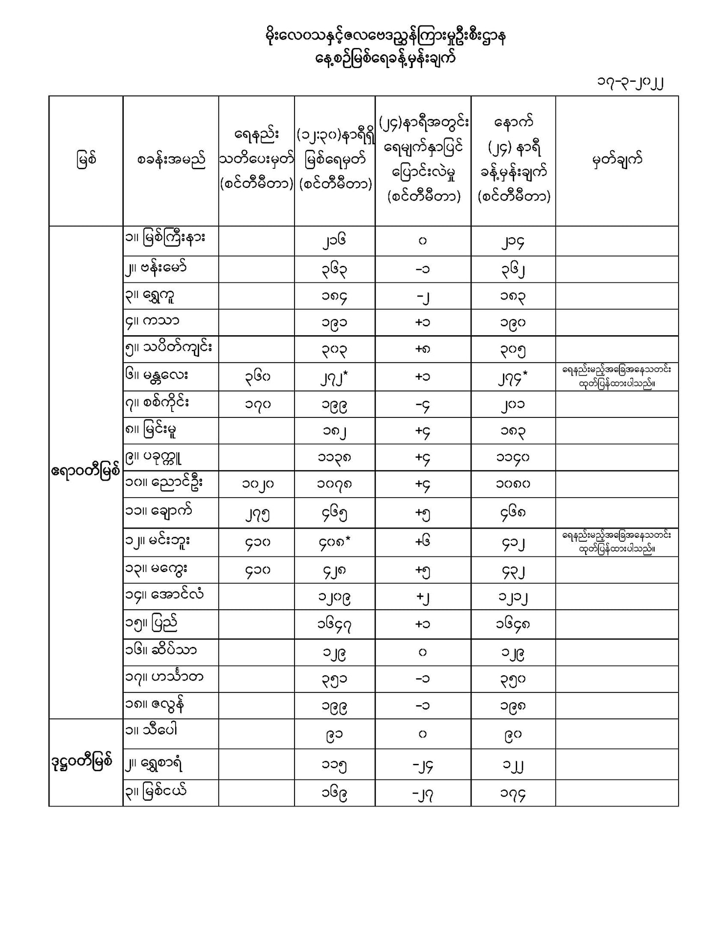Mar 17,2022 |01:32 | မတ် ၁၇ မိုးလေဝသနှင့် ဇလဗေဒညွှန်ကြားမှုဦးစီးဌာနမှ (၁၇.၃.၂၀၂၂) ရက်နေ့တွင် ထုတ်ပြန်သည့် နေ့စဉ်မြစ်ရေခန့်မှန်းချက်များကို အောက်ပါအတိုင်း ဖော်ပြထားပါတယ်... Crd>>>မိုး/ဇလ