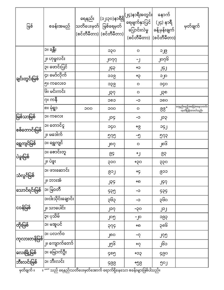 မိုးလေဝသနှင့် ဇလဗေဒညွှန်ကြားမှုဦးစီးဌာနမှ (၃၁.၃.၂၀၂၂) ရက်နေ့တွင် ထုတ်ပြန်သည့် နေ့စဉ်မြစ်ရေခန့်မှန်းချက်များကို အောက်ပါအတိုင်း ဖော်ပြထားပါတယ်...