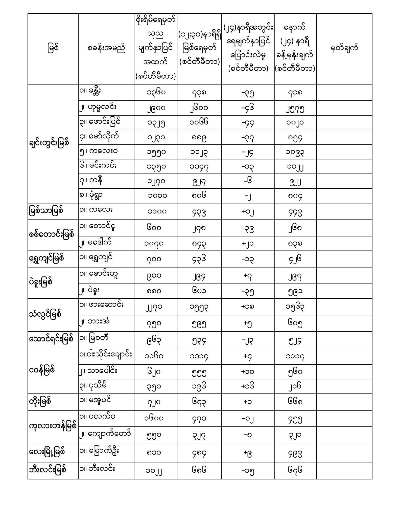 Jul 6,2022 |02:27 | ဇူလိုင် ၆ မိုးလေဝသနှင့် ဇလဗေဒညွှန်ကြားမှုဦးစီးဌာနမှ (၆.၇.၂၀၂၂) ရက်နေ့တွင် ထုတ်ပြန်သည့် နေ့စဉ်မြစ်ရေခန့်မှန်းချက်များကို အောက်ပါအတိုင်း ဖော်ပြထားပါတယ်... Crd>>>မိုး/ဇလ