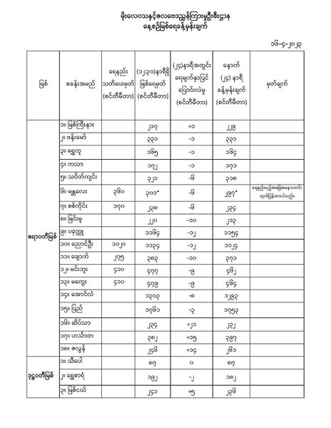 မိုးလေဝသနှင့်ဇလဗေဒညွှန်ကြားမှုဦးစီးဌာနမှ (၁၆.၄.၂၀၂၃) ရက်နေ့တွင် ထုတ်ပြန်သည့် နေ့စဉ်မြစ်ရေခန့်မှန်းချက်များကို အောက်ပါအတိုင်း ဖော်ပြလိုက်ပါတယ်...