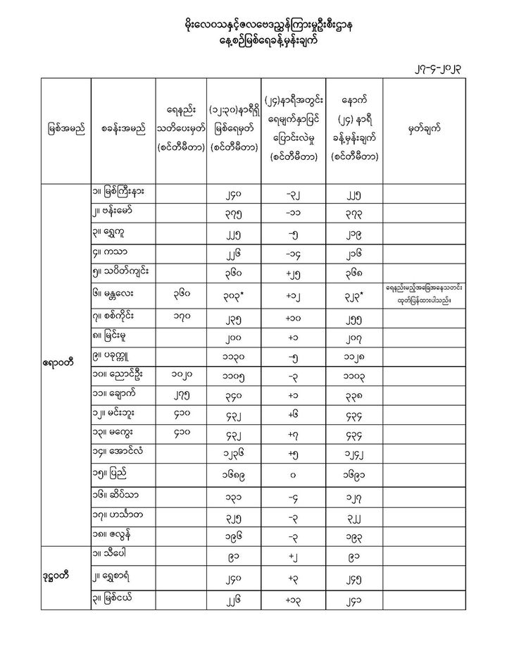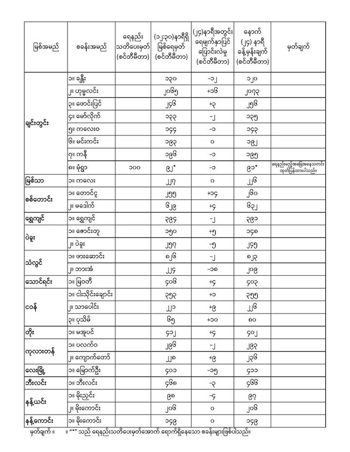 Apr 27,2023 |02:00 | ၂၇-၄-၂၀၂၃ မိုးလေဝသနှင့်ဇလဗေဒညွှန်ကြားမှုဦးစီးဌာနမှ (၂၇.၄.၂၀၂၃) ရက်နေ့တွင် ထုတ်ပြန်သည့် နေ့စဉ်မြစ်ရေခန့်မှန်းချက်များကို အောက်ပါအတိုင်း ဖော်ပြလိုက်ပါတယ်... Crd>>>မိုး/ဇလ