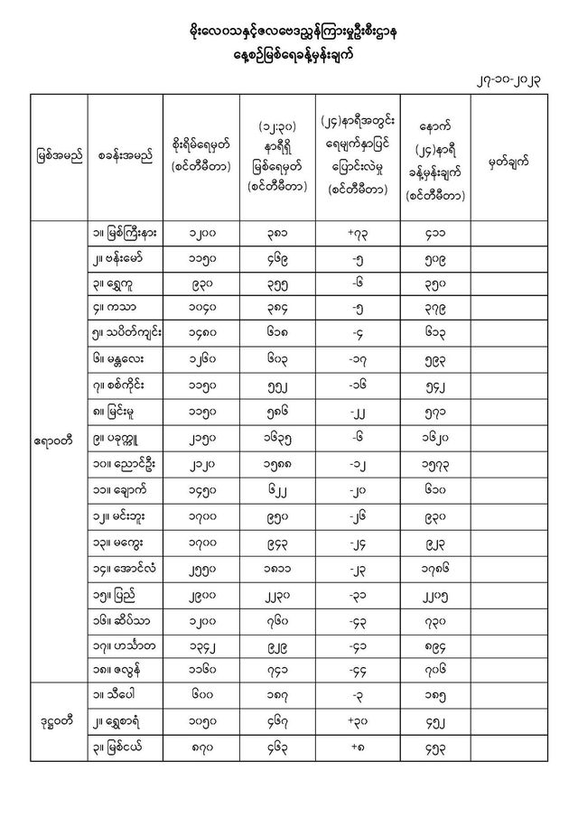 မိုးလေဝသနှင့်ဇလဗေဒညွှန်ကြားမှုဦးစီးဌာနမှ (၂၇.၁၀.၂၀၂၃) ရက်နေ့တွင် ထုတ်ပြန်သည့် နေ့စဉ်မြစ်ရေခန့်မှန်းချက်များကို အောက်ပါအတိုင်း ဖော်ပြလိုက်ပါတယ်...