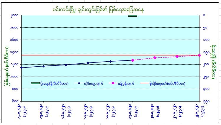 ယနေ့မြန်မာစံတော်ချိန် (၁၃:၃၀)နာရီအချိန် တိုင်းထွာချက်အရ ချင်းတွင်းမြစ် ရေသည်မင်းကင်းမြို့တွင် (၂)ပေခွဲခန့် ယင်းမြို့၏ စိုးရိမ်ရေမှတ်အောက်တွင် ရောက်ရှိနေပါသည်။ အဆိုပါမြစ်ရေသည် နောက်(၃)ရက်အတွင်း ယင်းမြို့၏ စိုးရိမ်ရေမှတ်သို့ ရောက်ရှိနိုင်ပါသည်။