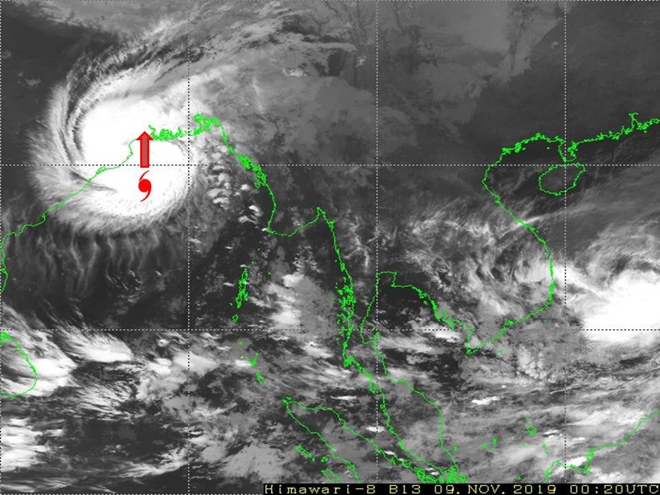 မိုးလေဝသနှင့်ဇလဗေဒညွှန်ကြားမှု ဦးစီးဌာနမှ ယနေ့နံနက် ၇ နာရီထုတ်ပြန်သည့် မိုးလေဝသသတင်းအရ ဘင်္ဂလား ပင်လယ်အော်အနောက်မြောက်ပိုင်းနှင့် ယင်းနှင့်ဆက်စပ်လျက်ရှိသော ဘင်္ဂလားပင်လယ်အော် အနောက်အလယ်ပိုင်းတို့တွင် ဖြစ်ပေါ်နေသော အားအလွန်ကောင်းသော ဆိုင်ကလုန်း မုန်တိုင်း (Very Severe Cyclonic Storm) "ဘာဘ်ဘယ်" (BULBUL)သည် မြောက်ဘက်သို့ ရွေ့လျားခဲ့ပြီး၊ အိန္ဒိယနိုင်ငံ၊ ပါရာဒစ်ပ်မြို့(Paradip) (ဩရိဿ-Odisha)၏ အရှေ့ တောင်ဘက် ရေမိုင်(၇၀)မိုင်ခန့်၊ စာဂါကျွန်း(Sagar Islands) (အနောက်ဘင်္ဂလားပြည်နယ်-West Bengal)၏ တောင်-အနောက်တောင်ဘက် ရေမိုင်(၁၃၀)မိုင်ခန့်၊ ဘင်္ဂလားဒေ့ရှ်နိုင်ငံ၊ ခီပူပါရာမြို့ (Khepupara)၏ အနောက် တောင်ဘက် ရေမိုင်(၂၀၀)မိုင်ခန့်၊ မြန်မာနိုင်ငံ၊ စစ်တွေမြို့(Sittwe)၏ အနောက်-အနောက်တောင်ဘက် ရေမိုင်(၃၀၀) မိုင်ခန့်နှင့် မောင်တောမြို့(Maungdaw)၏ အနောက်-အနောက်တောင်ဘက် ရေမိုင်(၂၈၀) မိုင်ခန့်အကွာပင်လယ်ပြင်ကို ဗဟိုပြုနေသည်။ ကပ္ပလီပင်လယ်ပြင်နှင့် ဘင်္ဂလားပင်လယ်အော်တောင်ပိုင်းတို့တွင် တိမ်အသင့်အတင့်မှ တိမ်ထူ ထပ်နေပြီး၊ ကျန်ဘင်္ဂလားပင်လယ်အော်တွင် တိမ်ထူထပ်နေပါသည်။