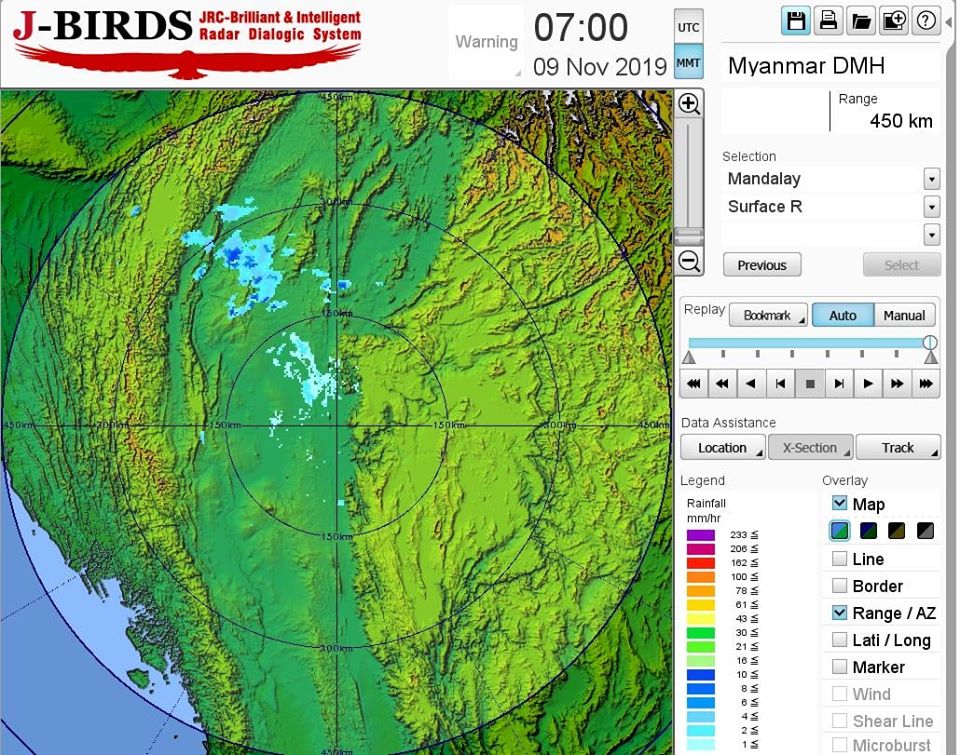 ယနေ့ညနေအထိခန့်မှန်းချက်အနေဖြင့် ရှမ်းပြည်နယ် (မြောက်ပိုင်းနှင့် အရှေ့ပိုင်း)၊ ကယားပြည်နယ်၊ ကရင်ပြည်နယ်နှင့်မွန် ပြည်နယ်တို့တွင် နေရာကွက်ကျား၊ နေပြည်တော်နှင့် တနင်္သာရီတိုင်းဒေသကြီးတို့တွင် နေရာကျဲကျဲ၊ မန္တလေးတိုင်းဒေသကြီး၊ ပဲခူးတိုင်းဒေသကြီး၊ ရန်ကုန်တိုင်းဒေသကြီး၊ ဧရာဝတီတိုင်းဒေသကြီး၊ ကချင်ပြည်နယ်နှင့် ရှမ်းပြည်နယ် (တောင်ပိုင်း)တို့တွင် နေရာစိပ်စိပ်နှင့် ကျန်တိုင်းဒေသကြီးနှင့် ပြည်နယ်တို့တွင် နေရာအနှံ့အပြား မိုးထစ်ချုန်းရွာပြီး၊ စစ်ကိုင်းတိုင်းဒေသကြီး၊ မန္တလေးတိုင်းဒေသကြီး၊ မကွေးတိုင်းဒေသကြီး၊ ချင်းပြည်နယ်နှင့် ရခိုင်ပြည်နယ်တို့တွင် နေရာကွက်၍ မိုးကြီးနိုင်သည်။ ရွာရန်ရာနှုန်းပြည့် ဖြစ်သည်။