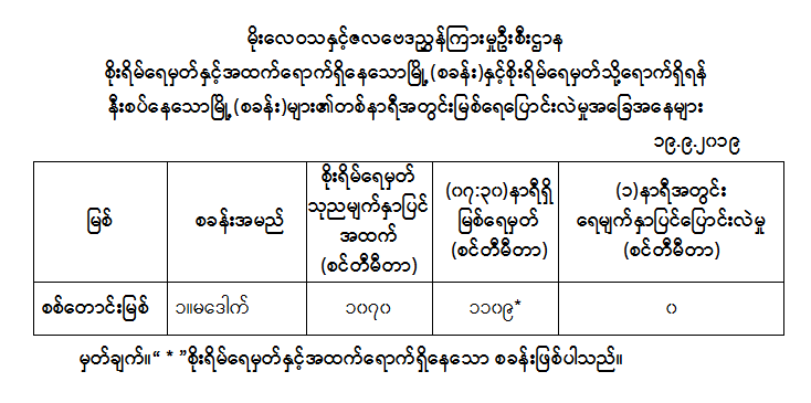 မိုးလေဝသနှင့်ဇလဗေဒညွှန်ကြားမှု ဦးစီးဌာနမှ မြစ်ရေပြောင်းလဲမှု အခြေအနေများကို ထုတ်ပြန်ပေးလျက်ရှိရာ ယနေ့ နံနက် ၇ နာရီခွဲအချိန်တွင် စစ်တောင်မြစ်ရေသည် စိုးရိမ်ရေမှတ် ၁၀၇၀ စင်တီမီတာကို ကျော်လွန်ကာ စိုးရိမ်ရေမှတ် ၁၁၀၉ စင်တီမီတာအထိရောက်ရှိနေကြောင်း သိရသည်။