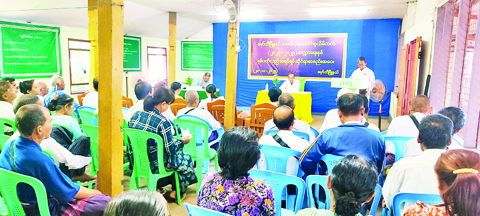 ရန်ကုန်တိုင်းဒေသကြီး မှော်ဘီမြို့နယ်တွင် သမဝါယမအသင်းစု လီမိတက်(၂၀၂၄-၂၀၂၅) ဘဏ္ဍာနှစ် နှစ်ပတ်လည်အရပ်ရပ်ဆိုင်ရာ အစည်းအဝေးကို ယမန်နေ့က မြို့နယ်သမဝါယမအသင်းစုအစည်း အဝေးခန်းမ၌ ကျင်းပသည်။