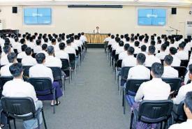 နိုင်ငံတိုင်းသည် မိမိတို့၏ အကျိုးစီးပွားအတွက် စီးပွားရေး၊ ပညာရေး၊ လူမှုရေး ကဏ္ဍပေါင်းစုံတွင် ကြိုးပမ်းအားထုတ်နေရမည်ဖြစ်ပြီး Moving Forward ဟူသည့်အတိုင်း အမြဲလျှောက်လှမ်းနေရမည်ဖြစ်ကြောင်း၊ ရပ်နေပါက မိမိတို့တိုင်းပြည် နောက်ကျ ကျန်နေခဲ့မည်ဖြစ်ကြောင်း၊ တိုင်းပြည်တည်ဆောက်ရာတွင် လူသားအရင်းအမြစ်ကောင်းများ ပေါ်ထွက်ရေးသည် အဓိကအရေးကြီးဆုံးဖြစ်သဖြင့် ပညာတတ် လူသားအရင်းအမြစ်များ ပေါကြွယ်ဝရေး ကြိုးပမ်းဆောင်ရွက်လျက်ရှိကြောင်း၊ ပညာတော်သင် သင်တန်းသားများအနေဖြင့်လည်း သင်ကြားပေးသည့် အတတ်ပညာများကို အလေးအနက်ထား သင်ယူသွားကြရန်လိုအပ်ပြီး အမြဲမပြတ်လေ့လာအားထုတ်နေကြရမည်ဖြစ်ကြောင်း၊ နိုင်ငံတော်နှင့် တပ်မတော်မှ ငွေကြေးအရင်းအနှီး၊ အချိန်အရင်းအနှီး များစွာကုန်ကျထားပြီး ပညာတော်သင်စေလွှတ်ပေးထားခြင်းဖြစ်သဖြင့် မိမိတို့၏ တစ်ဦးချင်းအတွက်၊ တပ်မတော်အတွက်၊ တိုင်းပြည်အတွက် အားကိုးအားထားရသည့် ပညာတတ်လူသားအရင်းအမြစ်များဖြစ်အောင် ကြိုးပမ်းဆောင်ရွက်ကြရမည်ဖြစ်ကြောင်း၊ တပ်မတော်သားများဖြစ်သည်နှင့်အညီ စည်းကမ်းစနစ်တကျဖြင့် နေထိုင် သွားလာလှုပ်ရှားရမည်ဖြစ်ပြီး ဒေသန္တရထုတ်ပြန်ထားသည့် စည်းမျဉ်းစည်းကမ်းများကိုလည်း လိုက်နာကြရန်လိုကြောင်း၊ စည်းကမ်းစနစ်တကျနေထိုင်၍ ကျန်းမာရေး ကောင်းမွန်ရေးအတွက်ကိုလည်း တစ်ဦးချင်းအသိ၊ သတိဖြင့် ဂရုစိုက်နေထိုင်ကြရန် လိုကြောင်း၊ အချင်းချင်းစည်းလုံးညီညွတ်စွာ နေထိုင်လုပ်ကိုင်ဆောင်ရွက်ကြပြီး မိမိနိုင်ငံ ဖွံ့ဖြိုးတိုးတက်ရေးအတွက် တစ်ဖက်တစ်လမ်းမှ ကြိုးပမ်းဆောင်ရွက်ကြစေလိုကြောင်းဖြင့် မှာကြားသည်။
