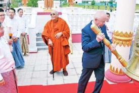 ထို့နောက် နိုင်ငံတော်စီမံအုပ်ချုပ်ရေးကောင်စီဥက္ကဋ္ဌ၊ နိုင်ငံတော်ဝန်ကြီးချုပ်နှင့် အဖွဲ့ဝင်များသည် စေတီတော်မြတ်ကြီးအတွင်းရှိ ဗုဒ္ဓရုပ်ပွားတော်မြတ်အား ဆီမီး၊ သစ်သီး(၉)မျိုးနှင့် မြသပိတ်ဆွမ်းတော်တို့ကို ကပ်လှူပူဇော်သည်။ ယင်းနောက် နိုင်ငံတော်စီမံအုပ်ချုပ်ရေးကောင်စီဥက္ကဋ္ဌ၊ နိုင်ငံတော်ဝန်ကြီးချုပ်၊ ရုရှားကာကွယ်ရေး ဝန်ကြီးဌာန၊ ဒုတိယဝန်ကြီးနှင့် ရုရှားအထက်လွှတ်တော်ဒုတိယဥက္ကဋ္ဌတို့က စေတီတော်ကြီး ဧည့်သည်တော်မှတ်တမ်းစာအုပ်တွင် အသီးသီးလက်မှတ်ရေးထိုးပူဇော်ကြသည်။