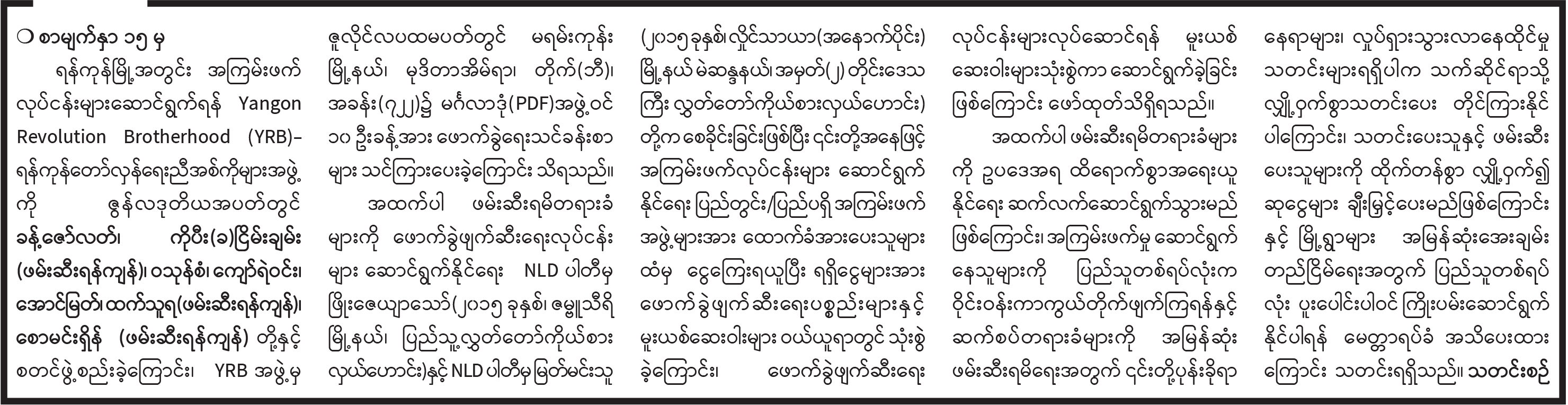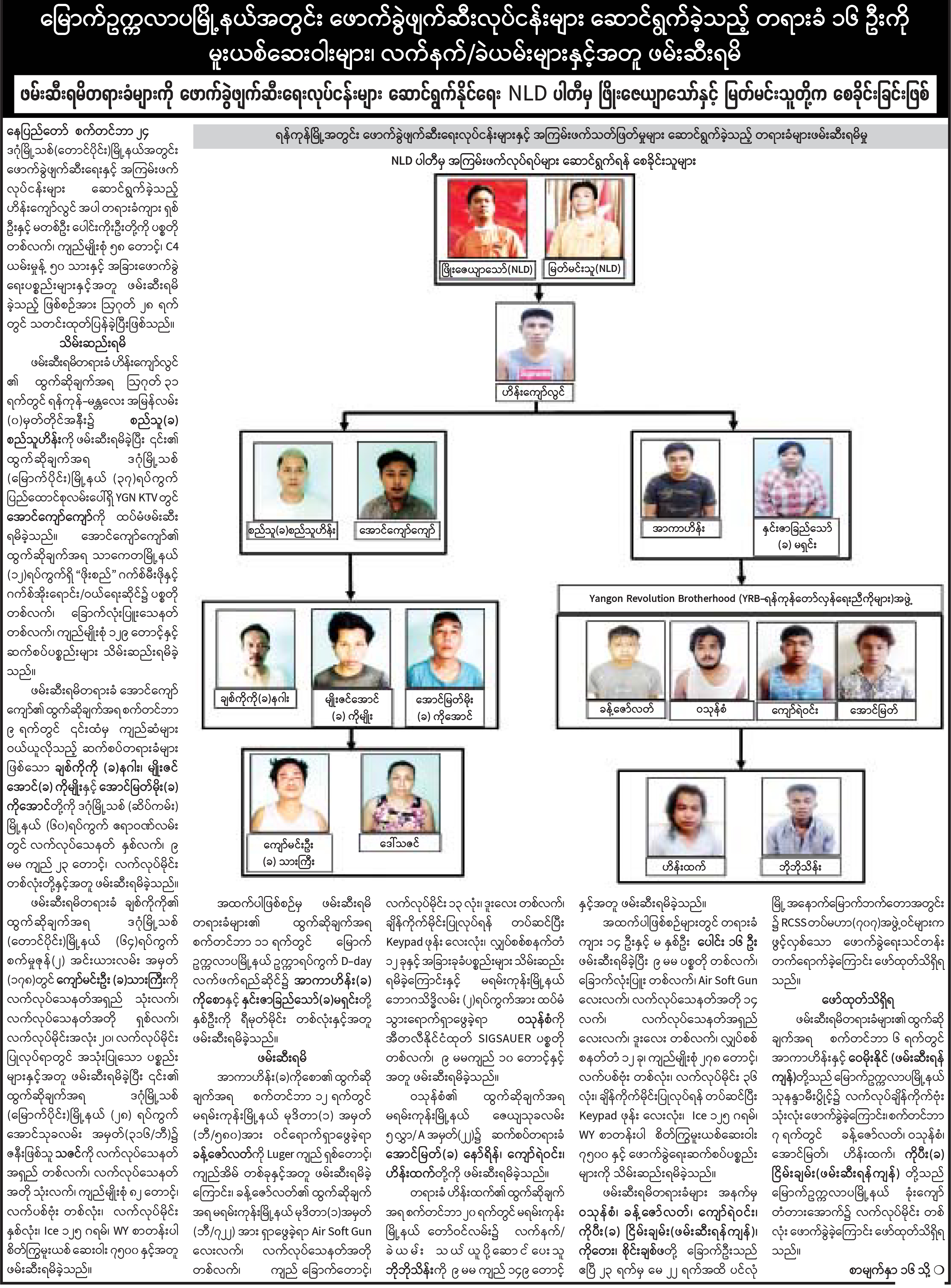 မြောက်ဉက္ကလာပမြို့နယ်အတွင်း ဖောက်ခွဲဖျက်ဆီးလုပ်ငန်းများ ဆောင်ရွက်ခဲ့သည့် တရားခံ ၁၆ ဦးကို မူးယစ်ဆေးဝါးများ၊ လက်နက်/ခဲယမ်းများနှင့်အတူ ဖမ်းဆီးရမိ
