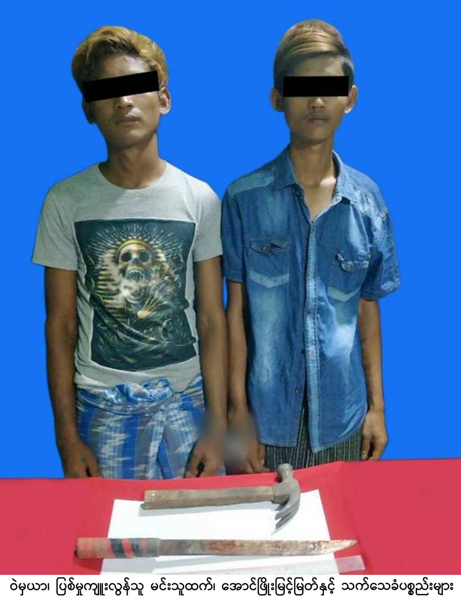 ပြစ်မှုကျူးလွန်သူ အောင်ဖြိုးမြင့်မြတ်နှင့် မင်းသူထက်တို့မှာ အခင်းဖြစ်ပြီး ထွက်ပြေးတိမ်းရှောင်သွားကြောင်း သိရှိရသဖြင့် မြောက်ဥက္ကလာပမြို့မရဲစခန်းမှ တပ်ဖွဲ့ဝင်များက ၎င်းတို့(၂)ဦးကို အမြန်ဖမ်းဆီးရမိရေး ဆောင်ရွက်ခဲ့ရာ ယင်းနေ့ ည ၆ နာရီ ၅ မိနစ်တွင် သုဓမ္မာလမ်းမကြီးရှိ ဘုန်းကြီးလမ်းမီးပွိုင့်အနီးမှ ဖမ်းဆီးရမိသဖြင့် ဥပဒေနှင့်အညီ တရားစွဲတင်ပို့နိုင်ရေး ဆက်လက်ဆောင်ရွက်လျက်ရှိကြောင်း သတင်းရရှိသည်။