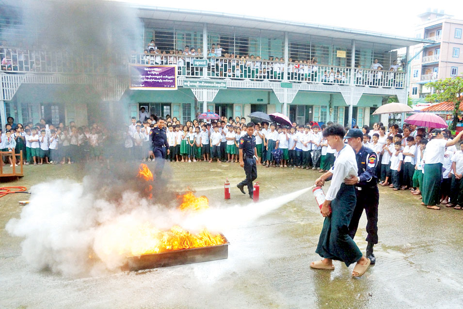 ရန်ကုန်တိုင်းဒေသကြီး မြောက်ဥက္ကလာပ မြို့နယ်ရှိ အမှတ်(၄)အခြေခံပညာအလယ် တန်းကျောင်းတွင် မြို့နယ်မီးသတ်ဦးစီးဌာန၊ မြို့နယ်ပြန်ကြားရေးနှင့် ပြည်သူ့ဆက်ဆံရေးဦးစီးဌာနနှင့် အခြေခံပညာဦးစီးဌာနတို့ ပူးပေါင်း၍ ကျောင်းသား ကျောင်းသူများ အသိပညာဗဟု သုတများ ရရှိစေရန်အတွက် သဘာဝဘေးအန္တရာယ်နှင့် မီးဘေး အန္တရာယ် ကြိုတင်ကာကွယ်နိုင် ရေး အသိပညာပေးဟောပြောခြင်းနှင့် လက်တွေ့သရုပ်ပြသခြင်းကို ယနေ့နံနက်ပိုင်းက အဆိုပါ ကျောင်းတွင် ပြုလုပ်သည်။