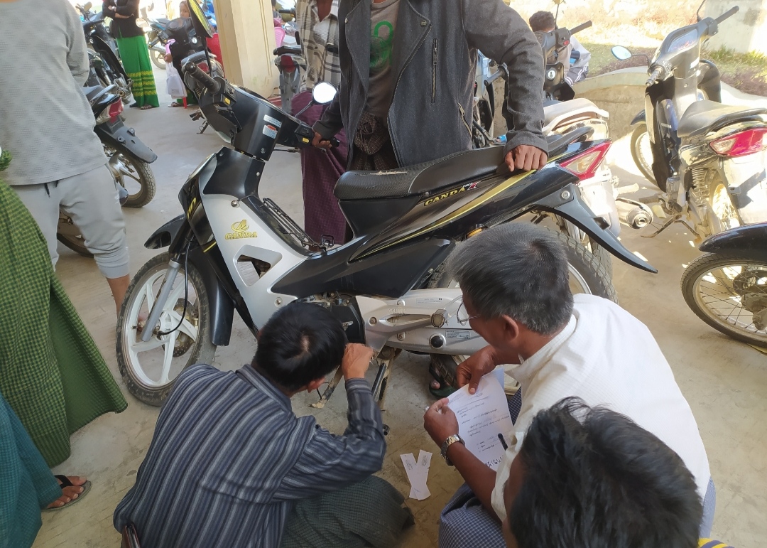 ရခိုင်ပြည်နယ်၊ မြောက်ဦးခရိုင်၊ မြောက်ဦးမြို့နယ်အတွင်းရှိ မှတ်ပုံတင်မဲ့ မော်တော်ဆိုင်ကယ် များအား One Stop Service (OSS) ဖြင့် မှတ်ပုံတင်ပြုလုပ်ပေးခြင်းနှင့် ဆိုင်ကယ်၊ မော်တော်ယဉ် များသက်တမ်းတိုးဆောင်ရွက်ခြင်းကို အောင်တပ်ရပ်ကွက် မြို့တော်ခန်းမ၌ ပြုလုပ်ပေး လျှက်ရှိ ကြောင်း သိရသည်။