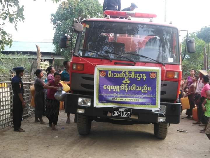 ရခိုင်ပြည်နယ်၊ မြောက်ဦးခရိုင်၊ မြောက်ဦးမြို့ အောင်တပ်ရပ်ကွက်၊ (ဒိုင်းဂျီရပ်)တွင် ရေရှားပါးကာ သောက်သုံးရေ အခက်အခဲရှိသဖြင့် အဆိုပါရပ်ကွက်များရှိ ရေပြတ်လပ်ရာနေရာများသို့ မြောက်ဦးခရိုင်မီးသတ်တပ်ဖွဲ့ဝင်များမှ ဧပြီ ၂၇ ရက် နံနက် ၈ နာရီအချိန်က သွားရောက်ကာ သောက်သုံးရေ လှူဒါန်းခဲ့ကြောင်းသိရသည်။