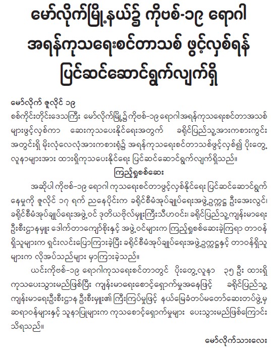မော်လိုက်မြို့နယ်၌ ကိုဗစ်-၁၉ ရောဂါ အရန်ကုသရေးစင်တာသစ် ဖွင့်လှစ်ရန် ပြင်ဆင်ဆောင်ရွက်လျက်ရှိ