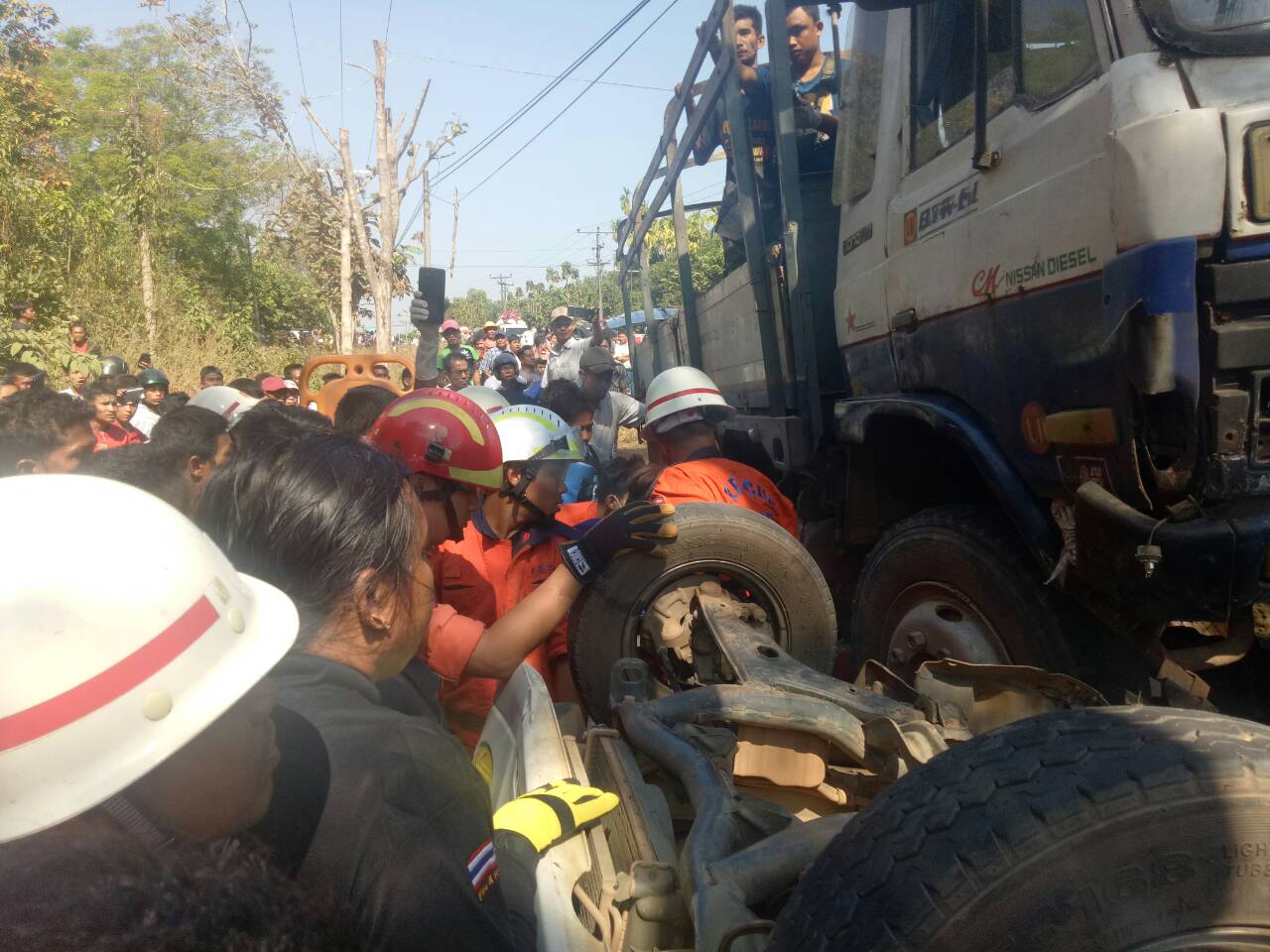 ယာဉ်တိုက်မှုဖြစ်ပွားရာသို့ မော်လမြိုင်ခရိုင် မီးသတ်စခန်းနှင့် မုဒုံမြို့နယ် မီးသတ်စခန်းတို့မှ မီးသတ်တပ်ဖွဲ့ဝင်များ၊ သက်ဆိုင်ရာ အဖွဲ့အစည်းများပူးပေါင်း၍ ကယ်ဆယ်ရေးလုပ်ငန်းများ ဆောင်ရွက်ခဲ့ပြီး ယာဉ်ပေါ်ပါ စုစုပေါင်း(၁၅)ဦးအနက် ထိခိုက်ဒဏ်ရာရရှိသူ ၅ ဦး(စိုးရိမ်ရ)နှင့် သေဆုံးသူ ၁၀ ဦးတို့အား မေတ္တာမွန် လူငယ်ပရဟိတ လူမှုကူညီရေးအသင်းယာဉ်ဖြင့် မော်လမြိုင်ပြည်သူ့ဆေးရုံနှင့် မုဒုံမြို့နယ် ပြည်သူ့ဆေးရုံသို့ ပို့ဆောင်ပေးခဲ့ကြောင်း ကနဦးသတင်းအရ သိရသည်။